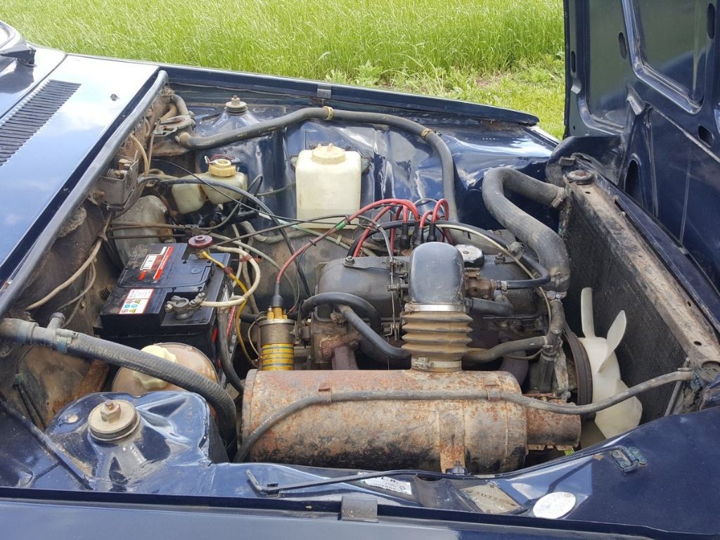Now after an oil and filter change and a new brake master cylinder it is back up running and driving. Condition wise the interior of the car is superb and apart from some staining on the roof lining needs no more than a light clean. Everything works in the car apart from the optional rear window wiper that was working but now appears to of seized ( we have disconnected it so as to cause no further damage). Exterior has had a paint at some time in the past and will polish up nicely. There are some vandal scratches, worse of which is on one door and an area of corrosion the lower corner of a rear door, probably started by someone opening it onto a low wall or the like. The chrome bumpers have some pitting but with some effort will still present well I am sure.