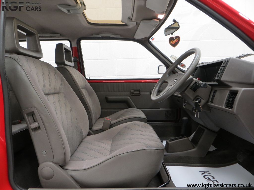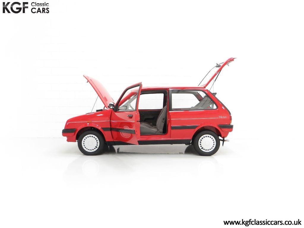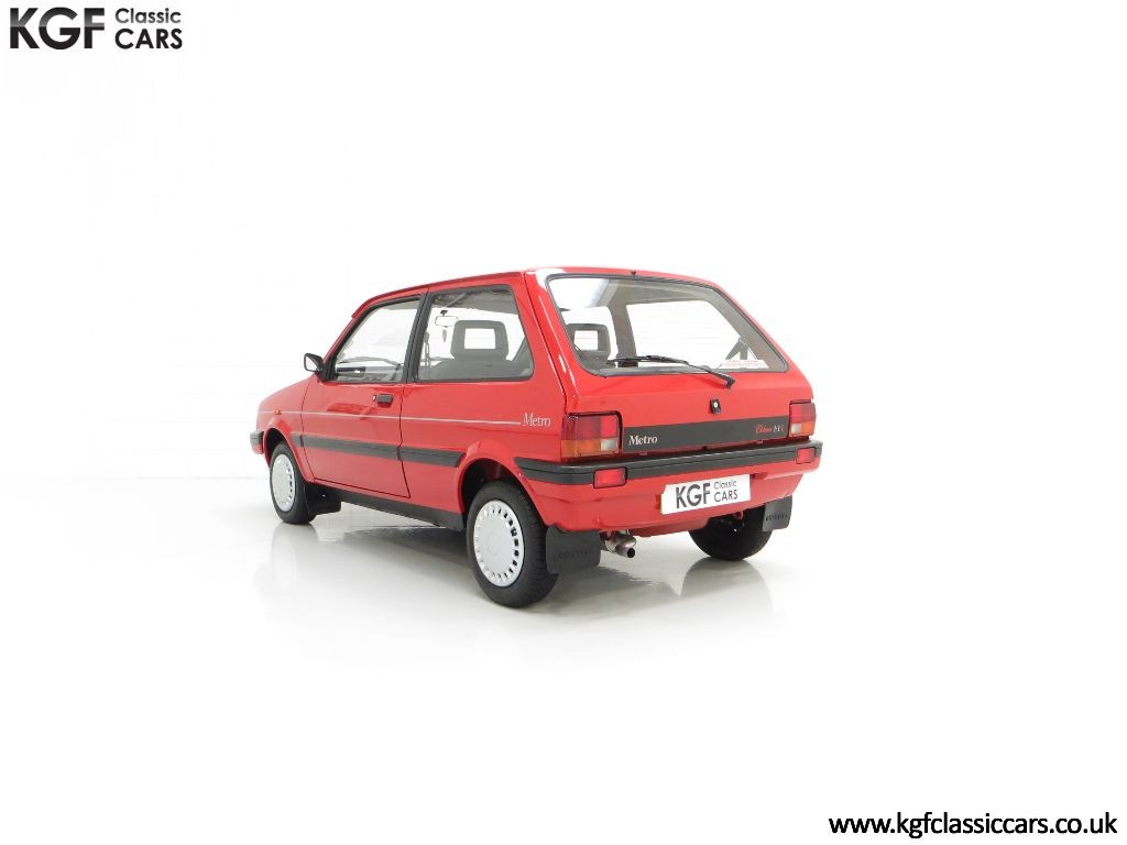 The ultimate show Metro, this 1989 Flame Red Metro needs no introduction having graced the winner’s podium at countless national shows and concours judging events. Finished in original Rover Flame Red, (Code COF),this example has been owned by renowned car enthusiast and highly talented detailer, Tom Morley, for the last 11 years and gained countless first place trophies in this time. Years’ worth of painstaking detailing has achieved simply breath-taking results and for a car wearing largely factory paint except the front wings, it is simply incredible. Only very close scrutiny will reveal light touched in markings, utterly insignificant and barely worthy of mention. The underside is very clean and features such as the polished suspension spheres with clear part number are remarkable! Originality such as factory spot welds to the rear arches, factory fitted decals, supplying dealer fit number plates, tax disc holder and Rover Service sticker are wonderful to see! The front and rear light clusters and rear fog lamps are factory fitment with the Austin logo to the lenses. This is a very special Metro.