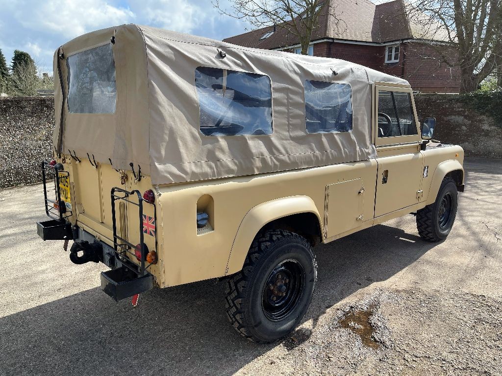 fitted with: steering guard, front light guards, a matching set of 5 Goodyear G90 tyres on Wolf heavy-duty rims (all tyres less than 5 years old), checkerplate to wingtops, near-new Exmoor Trim windowed vinyl hood, rear bumperettes, rear light guards and NATO towhook.