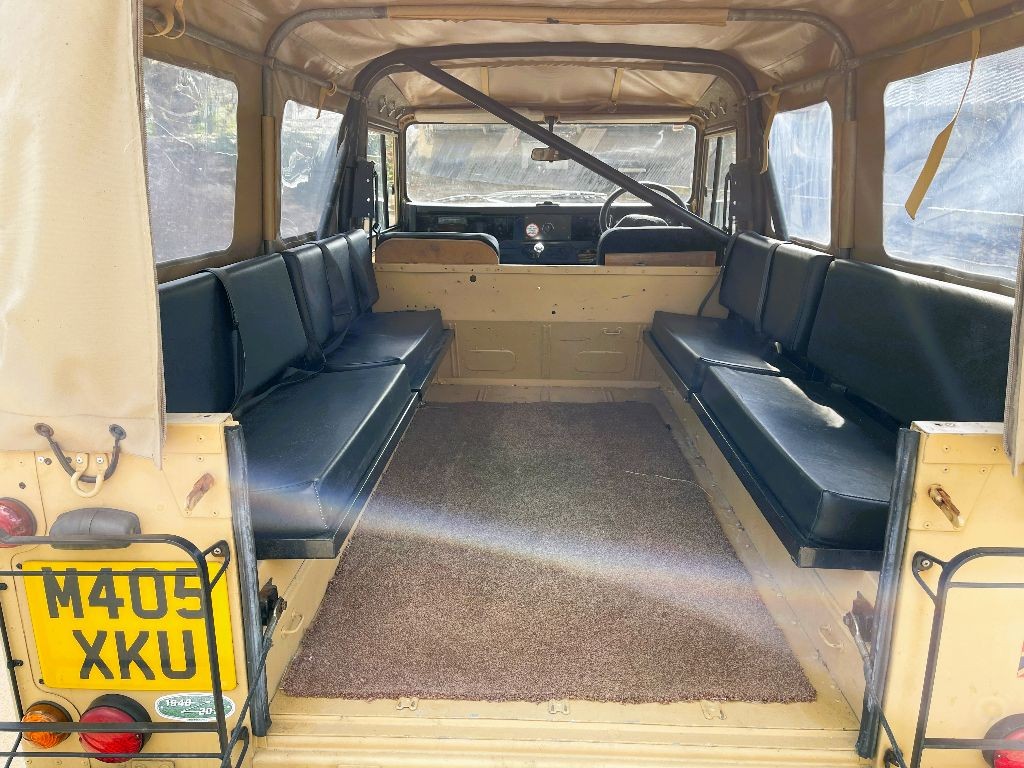 Internally it has 2 civilian-style seats in the front (which are heated), centre cubby box and the correct military roll bar. In the load area there are 4 sets of two-man bench seats (with belts) making it an ideal beach runner.