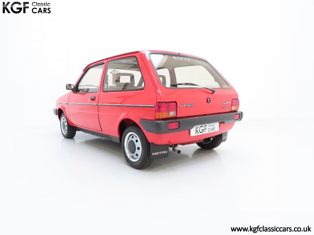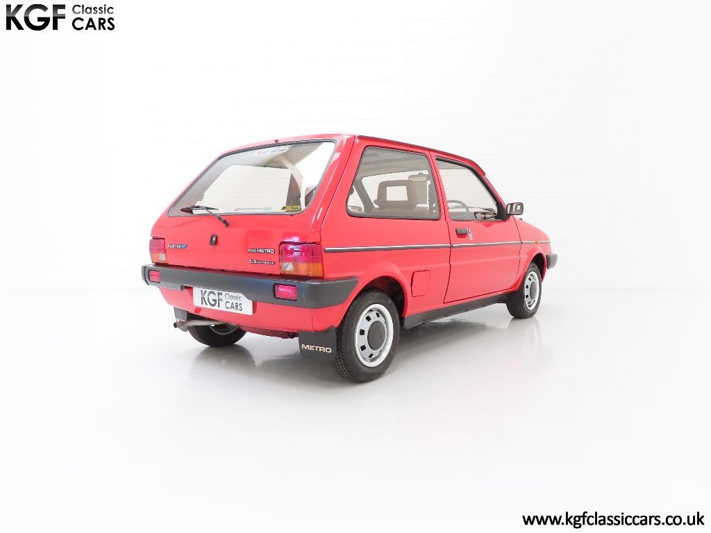 Finished in stunning Cinnabar Red, (Code CMT),this fantastic Mk1 Metro is every inch a rare surviving delight and boasts a bright unform finish to the original paintwork. Having covered just 35,022 miles from new, all trim, lights, glass and rubbers are in fabulous order and supplying dealer number plates, window stickers and etched glass are fitted. Even the genuine Metro headlamp protectors remain, a highly prized set alone! Some touched in stone chips, scratches and dings are visible upon close inspection but do not detract from the cars very impressive presentation and left to uphold originality. The underside is in superb order with detailed wheel arches and no welding or repairs to the body evident anywhere. Once a common sight on our roads, this fantastic example really does stir up nostalgia and represents a wonderful opportunity to the collector and enthusiast alike.