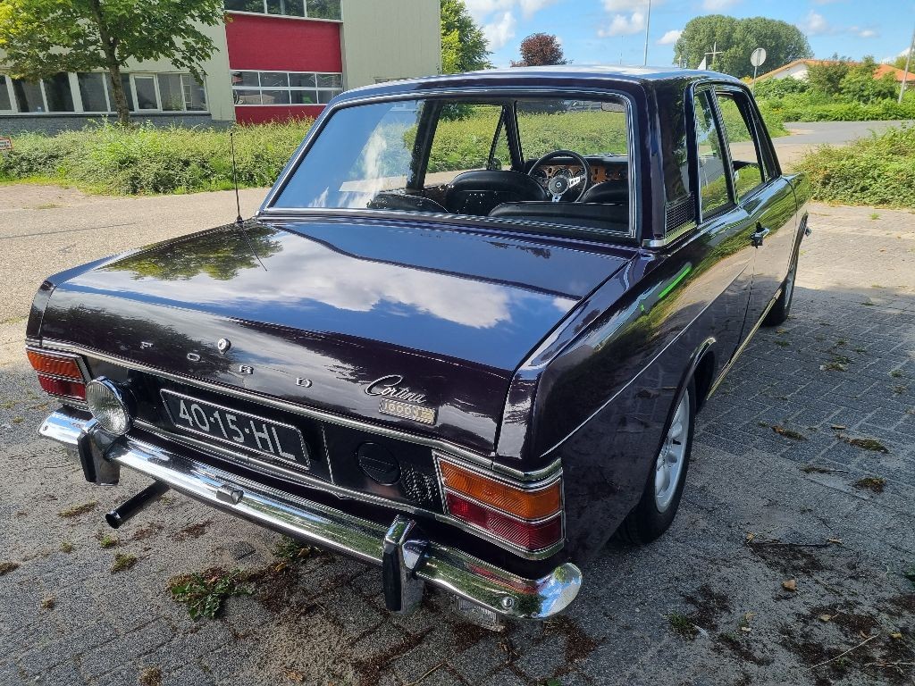 For sale 2 door Ford Cortina 1600E, 1969, LHD, Original Dutch delivered 1600E in aubergine whit black interior. Rare series of which only 2600 were made. Requires slightly restoration on bodywork. Alloy wheels are fitted but Rostyle wheels, extra wooden two door set and original EU steering wheel present by sale. More pictures of the 2 door 1600E are available upon request.