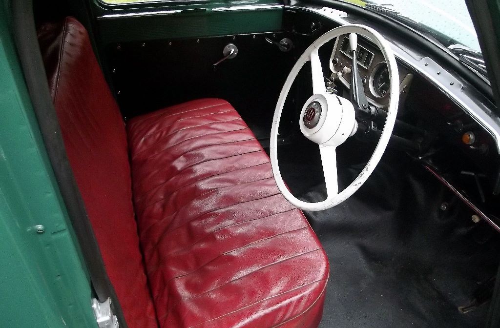 The features include, wing mirrors, driver’s door mirror, heater, cigarette lighter, period black and silver number plates, wood panelling to rear, chrome hubcaps with chrome rim embellishers, period white steering wheel, ashtray, side chrome strip and 2 opening rear doors.