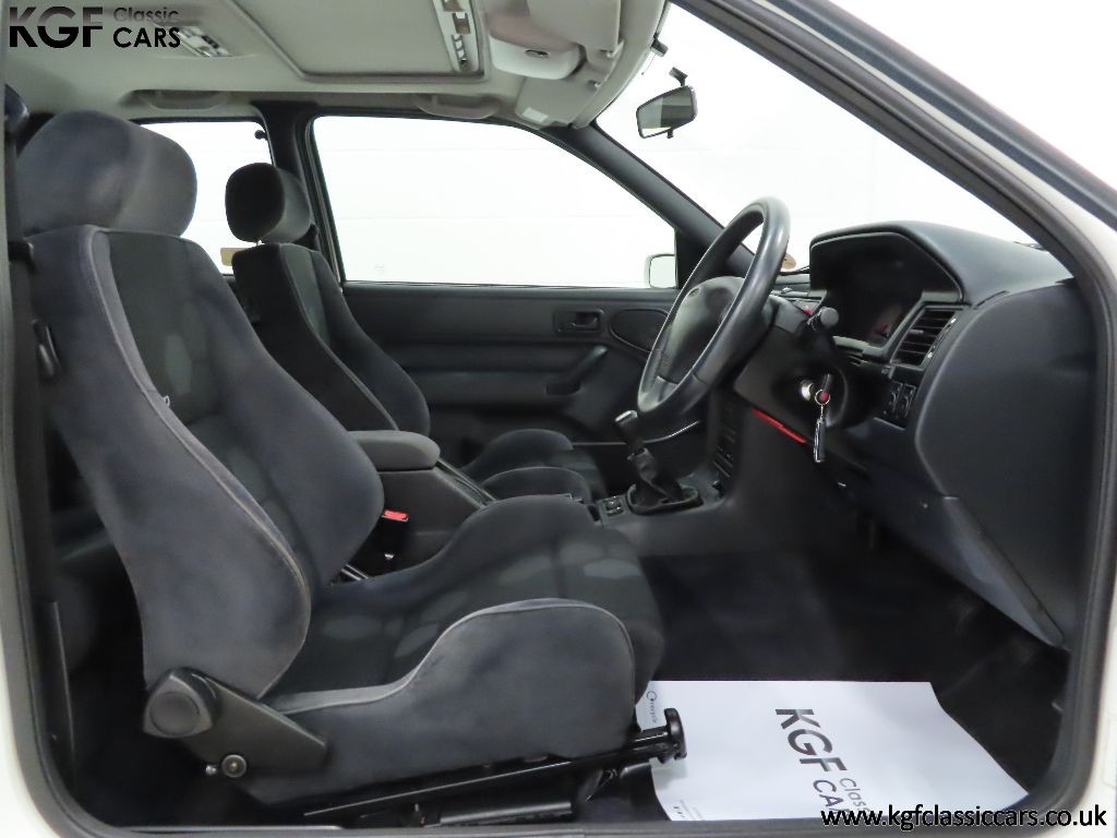 Assembled in November 1995 at the Rheine Assembly Plant in Germany, this factory specified Luxury model was registered on the 1st December 1995 by Ford Main Dealer, Evans Halshaw Motors in Halifax. Complete history mostly by Ford Main Dealers throughout the cars life is neatly and chronically filed to leave no doubt to the care lavished on the car. The first owner was the proprietor of an established sports and classic car dealership who owned the car for three years. There have been just two further keepers, the previous owner having purchased the car in 2005 and ownership history is fully traceable with both used car sales invoices in the history file. Every MOT certificate dating back to the first in 1998 along with many invoices fully verify the 26,245 miles covered. All handbooks, guides and point of sale literature is held in the Ford document wallet and three keys including the red master key are present. In November 2022 works carried out include among other maintenance included a major service, brake overhaul including calliper recondition and timing belt renewal with supporting invoice for £4,150. The original service book with corresponding stamped entries also has meticulous and highly detailed notes pertaining to thorough maintenance. Completing the history file are numerous RS Owners Club Concours Logbook Competition entries whereby the car completed for several years in various class categories. Even every single tax disc has been kept from the very first to the final one when they were discontinued! Look no further for a stunning example of this famous Ford RS, most definitely a cut above the rest!