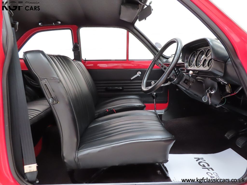 The road version of the rally winner and available only at your Ford Rallye Sport dealer was the draw of these special cars built at the Advanced Vehicle Operations (AVO) division. Finished in one of the three launch colours, Sunset Red (Code J), this genuine early Mexico is stunning with incredible detailing extending to the underside for those wishing to enter the show circuit of this once proven concours winner. Vital components such as the rear stone deflector held in by eight bolts in the boot floor and strengthened AVO workmanship are laid bare for all to see. A few minor blemishes do not detract from this Concours d’Elegance winner. The chrome, glass and badges are in immaculate order with the front screen still being the genuine Ford Triplex laminated item with accompanying sticker cleaned by Trico Speedblade wipers. The lens units are FoMoCo and the contrasting Mexico stickers are in perfect condition cementing the iconic rally look.