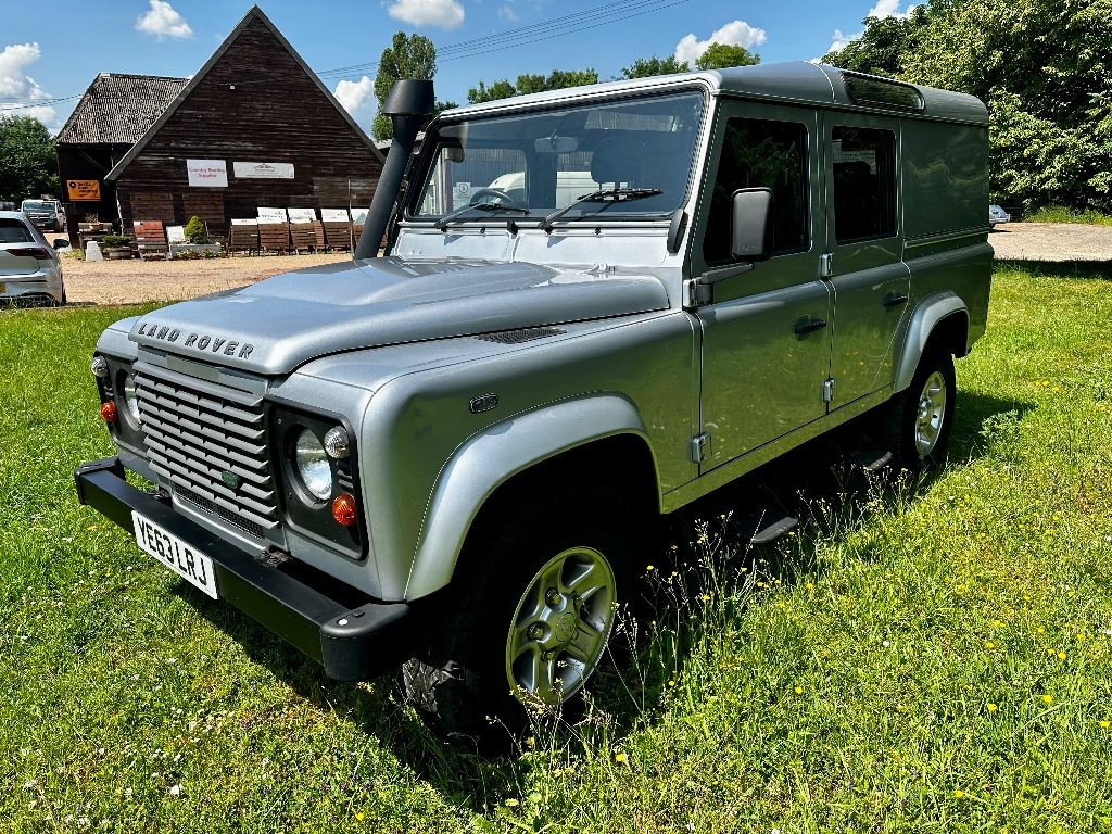 motodrome offer this 2013/63 Land Rover Defender 110 TDCi County Utility Wagon 5 seater, finished in Indus Silver with anthracite cloth trim.
