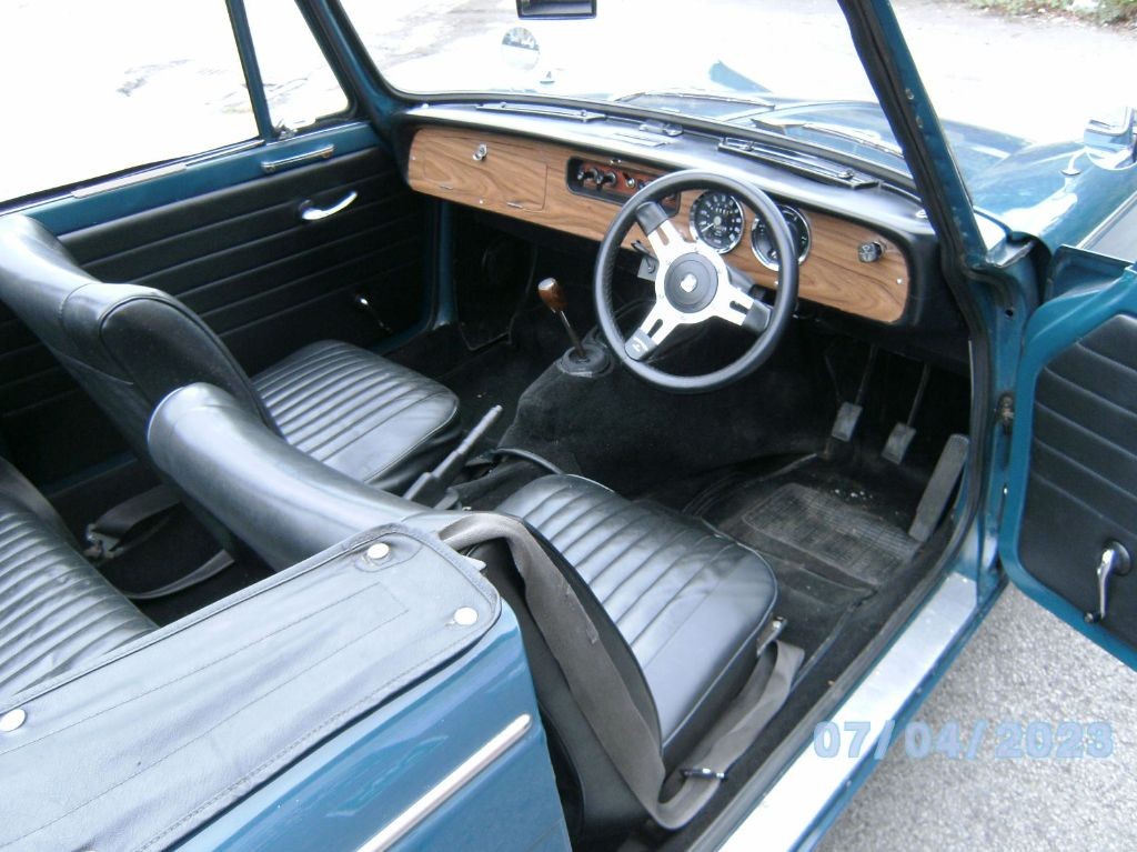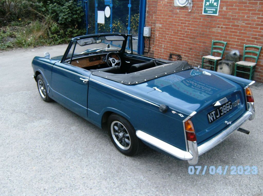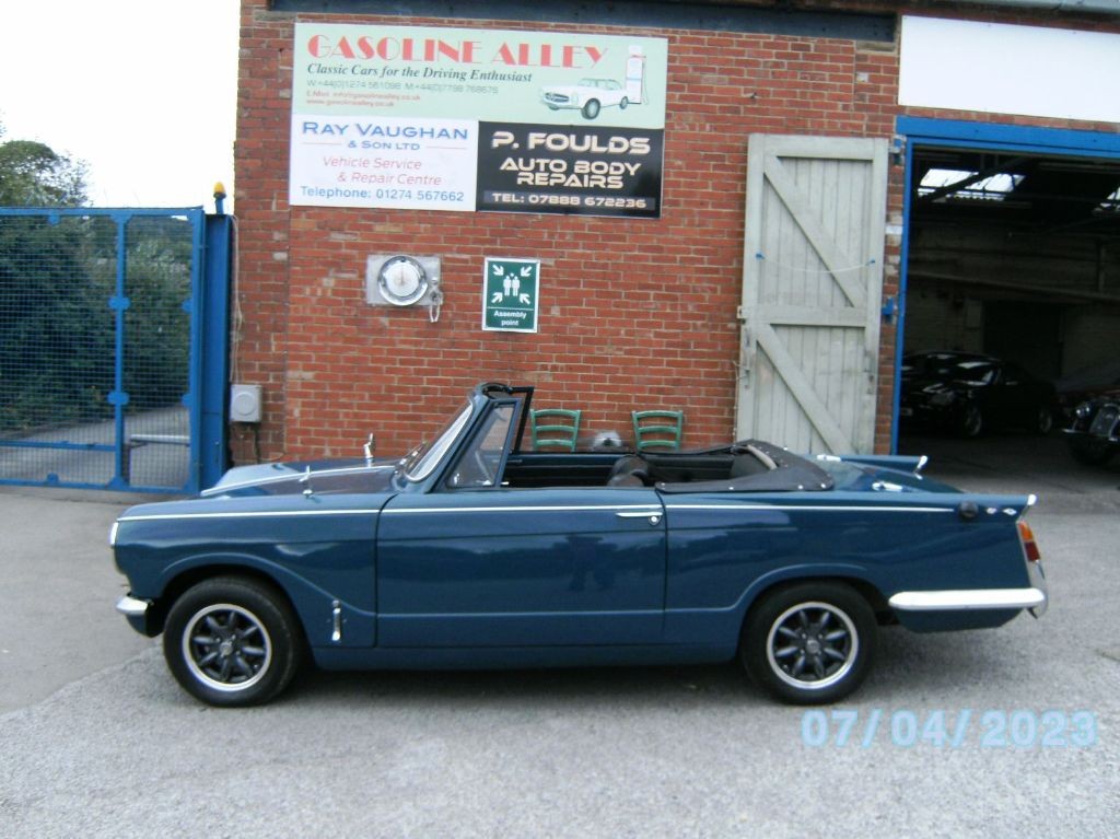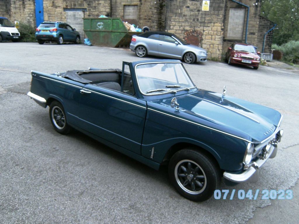Triumph Herald 13/60 Convertible in stunning condition having just had an MOT (although registered historic), the car is ready to go. First Registered in November 1968 and Finished in Blue with black leatherette interior the car has a full set of wet weather gear and 4 light alloy wheels. It has a good service history with it and it has been well maintained. Cars in this great condition are becoming very hard to find and you would be hard pressed to find another at this great value price. Great fun, great summer car and a true British Classic.