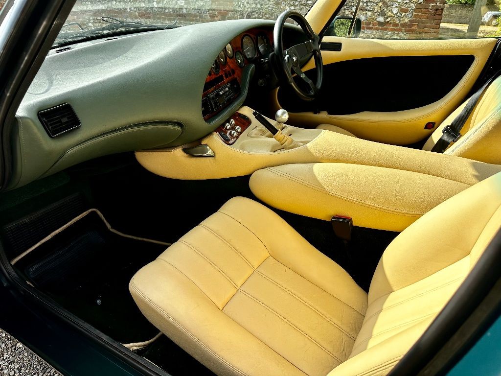 History-wise we have the original leather-bound owners handbook which incorporates the service history. It was originally supplied by HR Owen in South Kensington and serviced by them 5 times up to 1997 and 15525m, and thereafter 8 times by SHG TVR Farnham up to 37489m in 2004, then 3 times by Racing Green TVR up to 44609m in 2006, then a further 3 times by Fernhurst TVR to 54174m