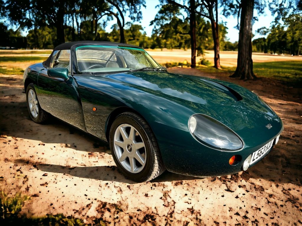 motodrome offer this magnificent 1994 TVR Griffith 500, finished in Cooper Green metallic with full cream leather interior trim and black hood.