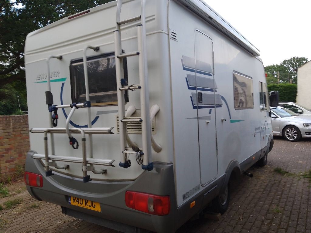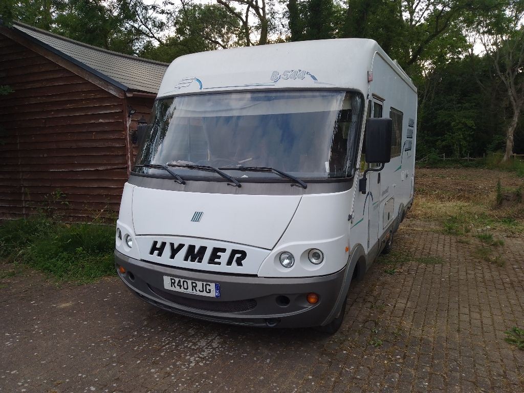 Hymer 544 Fiat 2.5 tdi, RHD, 5 berth, drop down bed, shower/toilet, rear kitchen, blown heating, wind out awning, bike rack, MOT, 5 sp manual, power steering.
