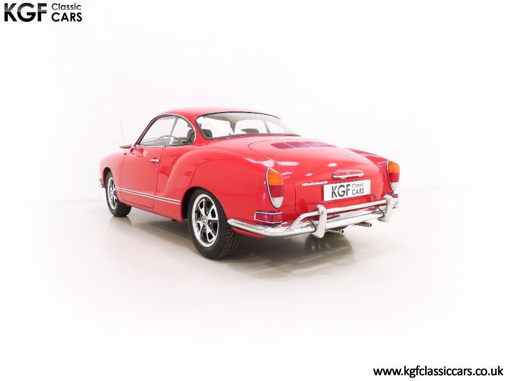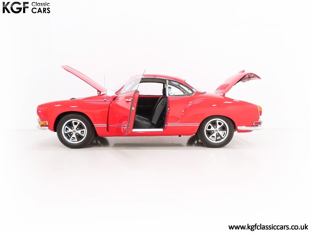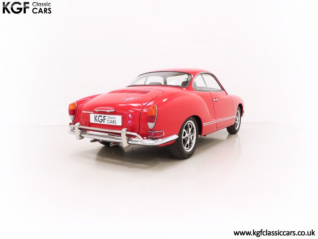 This 1970 model year Volkswagen Karmann Ghia was manufactured in January 1970 at the Karmann Coachworks in Osnabruck, Germany, where originally artisans made coaches for European nobility. This prime example was imported from Florida to the UK in August 2021 by a seasoned Volkswagen collector, William Ward. His VW collection incorporates the most iconic and immaculate air-cooled models amassed over decades. Frustrated by the overpriced and poorly restored Type 14 examples in the UK, he eventually managed to source a car directly from the US owner and ex Florida State Prosecutor/Vietnam Veteran, Mr Garringer. He too was a gentleman heavily involved in classic Volkswagen circles and the two formed a mutual bond to enable the car to arrive safely in the UK. A huge file of paperwork from renowned Volkswagen and Karmann Ghia specific specialists show the level of expense required in order to create such a beautifully restored example. An original handbook and period sales brochure is included. Fully UK registered and amongst the finest Karmann Ghia’s available, this example will delight in every respect.