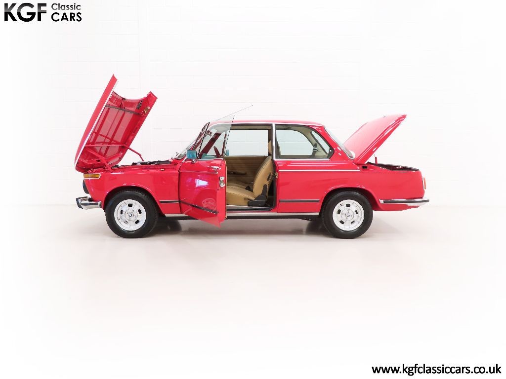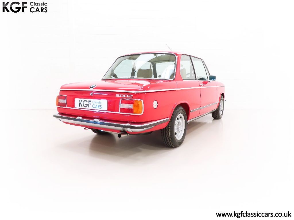 Introduced as a compact, shortened version of BMW’s existing Neue Klasse Sedans, the ’02’ Series was named so in relation to the number of doors the cars had. This stunning 2002 model finished in vibrant Verona Red, (Code 024), boasts a brilliant uniform deep polished finish to the paintwork following an extensive full restoration carried out several years ago to include a full strip down of the entire shell and underside. The trim sections, rubbers and chrome work are incredible and virtually unmarked and the underside is stunning. There is a small area of delamination to the front screen at one bottom corner. Original features such as the BMW and 2002 model designation badges, original windscreen with running-in label, factory light clusters and BMW stamped lockable fuel cap will delight the avid BMW aficionado. A superb example of a model deep-seated in classic BMW history.
