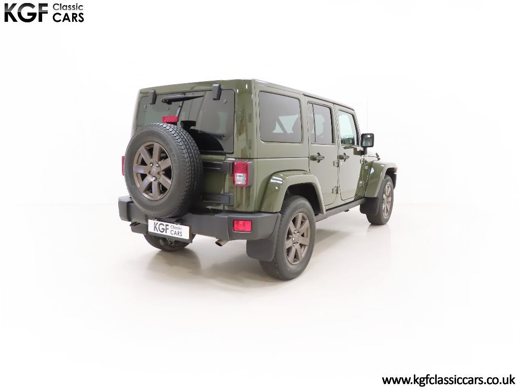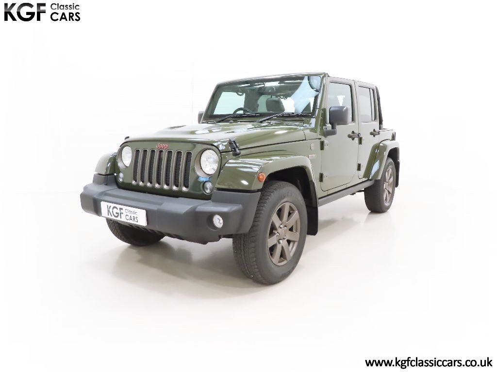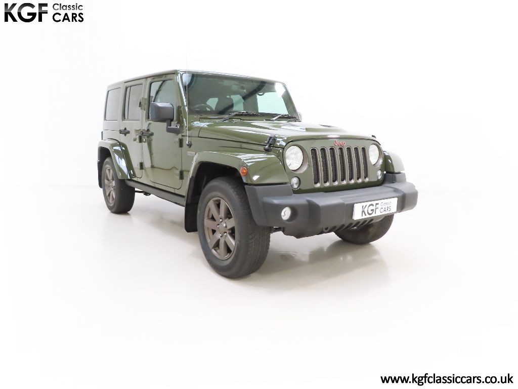 Honouring 75 years of an unstoppable icon and the go anywhere, do anything spirit, the 2016 75th Anniversary Editions were produced. Available as a Jeep Renegade, Wrangler, Cherokee and Grand Cherokee only 85 Wrangler 75th Anniversary Edition examples were supplied to the UK. The Wrangler was available in just three colours, Black, Bright White and exclusive Sarge Green, all fully specified to celebrate a model that virtually created the 4WD segment in 1941.