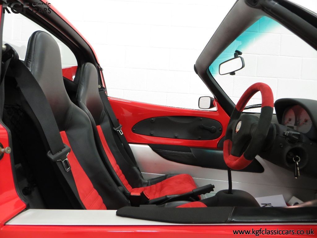 Registered on the 27th April 2000 by Lotus main dealers, Peter Smith Sports Cars Ltd, the car was owned by the first registered keeper until 2019 with just one further keeper since. KGF Classic Cars sold this stunning example to the second owner and are delighted to welcome the rare car back! The car has benefitted from a full C Service, cambelt and water pump and brake overhaul at 9,631 miles and a further A service in May 2024 at 9,795 miles. The Elise document wallet holds all handbooks including a service book with five stamped entries, two from the supplying dealer. All documentation including the Certificate of Conformity, Elise Type 49 and publicity material are included. Two keys, two Cobra immobiliser tags and two Cobra remotes are present with the remotes operation but worn. Showing exceptionally low mileage, this rare Elise is for the discerning car connoisseur.