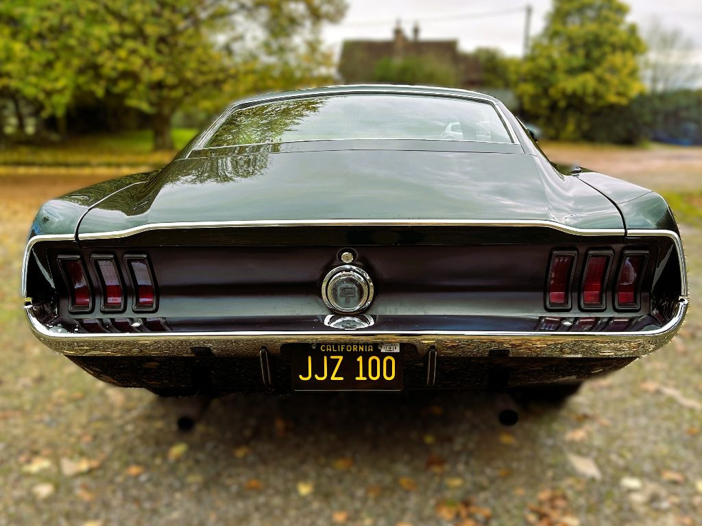 The tail panel was painted Matt Black. This is a bone of contention among Bullitt aficionados. Some shots from the film show green, others black. The theory is the rear panel (and the rear light bezels) were temporarily blacked out with distemper, to avoid reflections where a chase car was filming from behind..