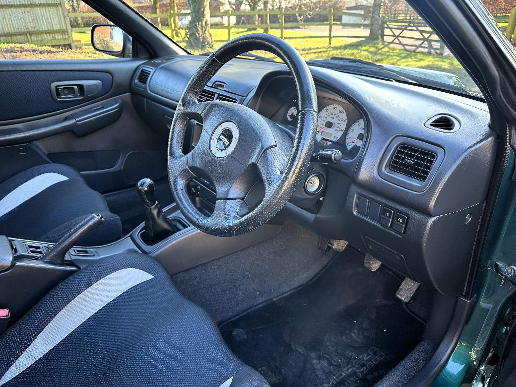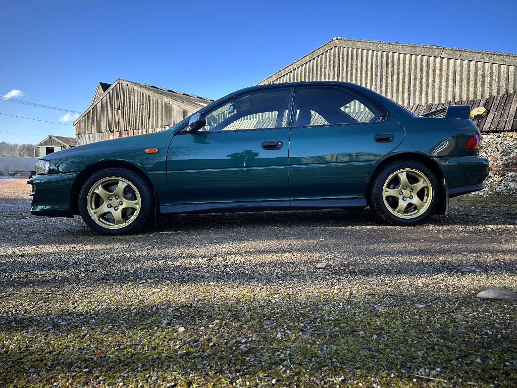 motodrome offer for sale this superbly-provenanced, low mileage 1999/V Subaru Impreza Turbo 2000 (GC8) Saloon, finished in Metallic Green with two-tone cloth sports trim.