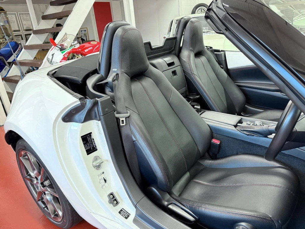SEATS... Designed for superb comfort, MX-5 bucket seats conform to your every curve and adjust to your specific driving position. Black supple Nappa leather with red contrast stitching, heated with 3 comfort settings.