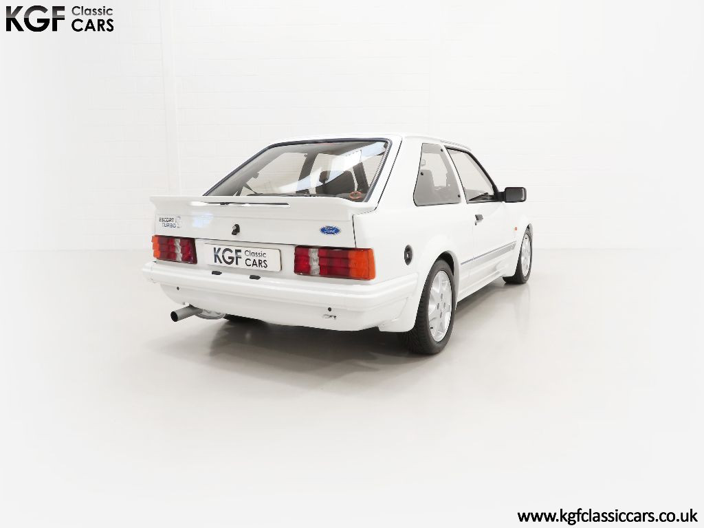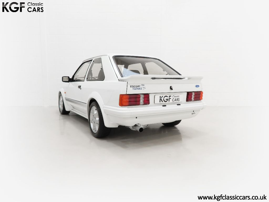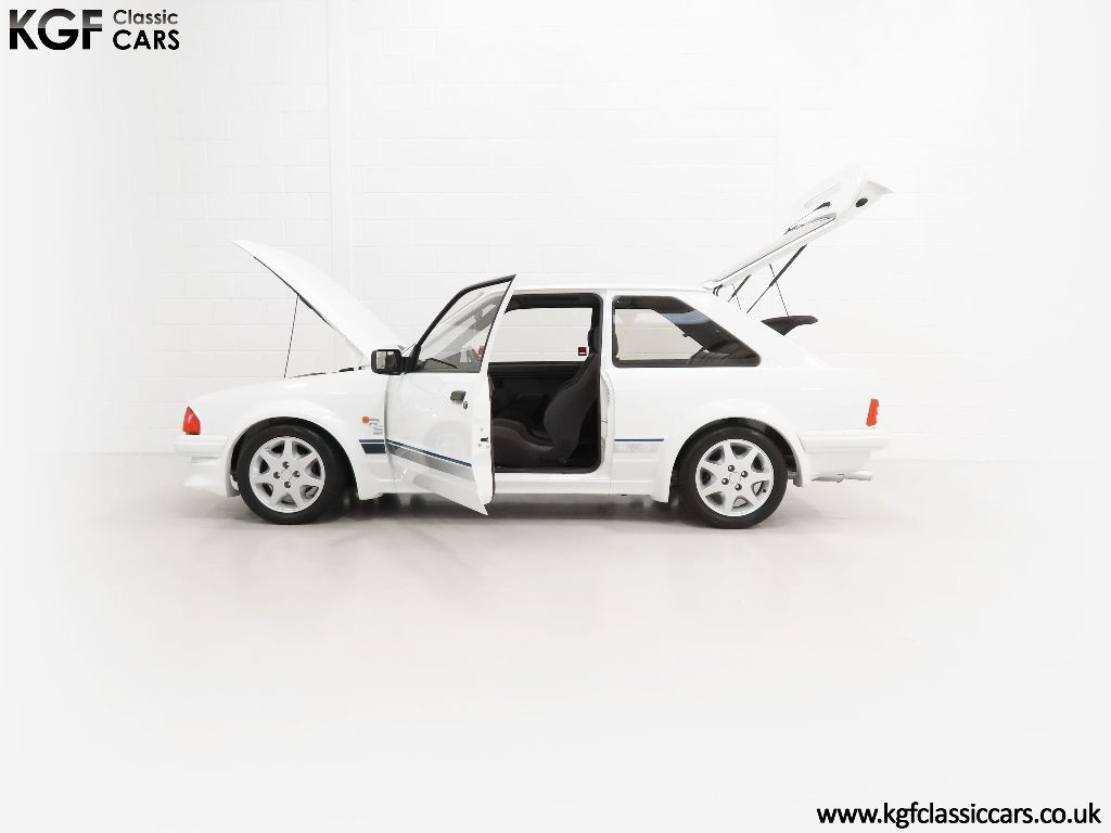 An incredible history awaits the new owner of this special RS. Built in December 1985 and registered on the 6th March 1986 by Ford main dealers, Days of Lowestoft, this example has only had five former keepers. The history files contains numerous invoices and every historic MOT. The original service book is full with entries revealing the service work and care this car has enjoyed and a diary diligently detailing all works carried out from 1989 until 2015 makes reassuring reading. It was then purchased by Steven Brannan, the Company Owner and Director of SJB Classics Ltd, a specialist Aston Martin restorer with a soft spot for Fast Fords. It was selected due to the condition and history and as his own personal car, it was restored to a concours level with no expense spared. The result today is truly spectacular. Supplied with the Escort operating guide, service book, original sales brochures and two sets of keys which work all locks, central locking and ignition, this car will absolutely appeal to a Blue Oval fanatic wanting one of the best.