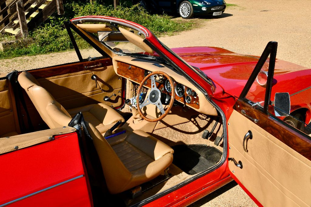 The Equipe 2-Litre Convertible combined fiberglass bodywork with Triumph mechanicals, resulting in a lightweight and agile vehicle. Its design included a full-width grille, twin headlamps, wrap-around bumpers, and a spacious interior with features like a three-spoke leather steering wheel and a walnut gear knob. The car's performance was notable for its era, with a top speed of around 100 mph and respectable acceleration.