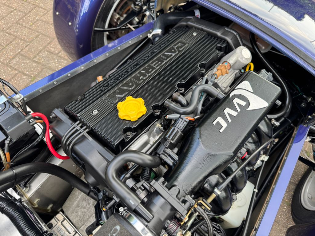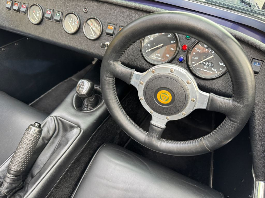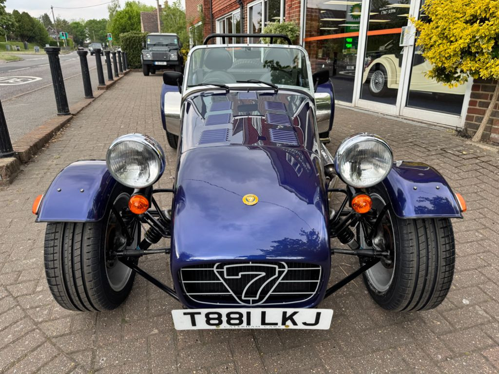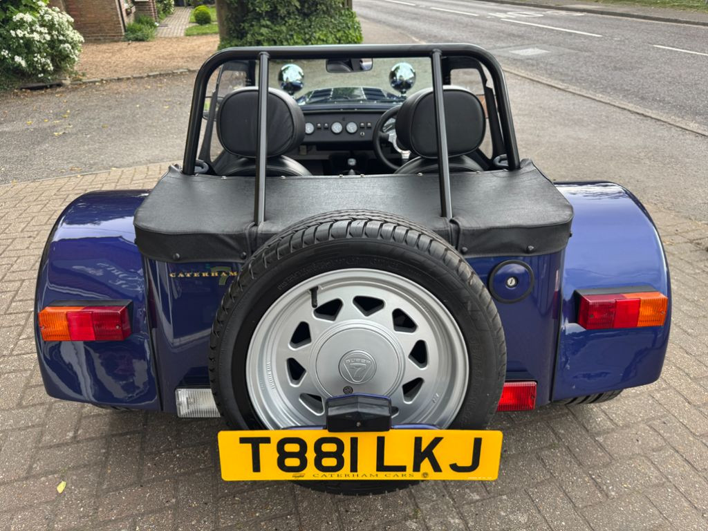 Special order Ceramic Blue Perlescent with Black leather seats, Rare 1.8 K-series VVC engine with desirable 6-speed manual gearbox, Equipped with Caterham individual adjustable seats, Caterham 4 point harnesses, Mota-Lita leather steering wheel, Alloy gear knob, Interior trim package, Rubber over mats, Heated screen, Heater, Chrome package, Full weather equipment (Hood/Side screens), Tonneau cover, Boot tonneau cover, Cycle wings, Stainless steel stone guards, Colour coded 7 grille, Spare wheel, Lockable fuel filler cap, De-dion, Exhaust guard, 15" Prisoner alloys, A rare FACTORY BUILT example, Complete with Original Proforma order & Purchase invoice from Caterham Cars, Original owners pack with service booklet, Original Caterham Cars Ltd business card, Mobil 1 Track Record Logbook & Service details, Various service/parts invoices, FSH – Just had major service, A truly cherished, super rare, 1 owner, perfect spec, factory built, 1800cc VVC Seven which has covered just 21,000 dry miles from new.