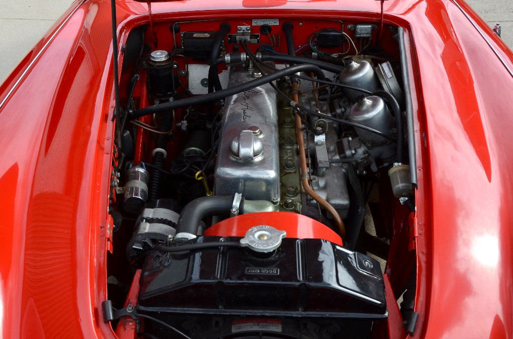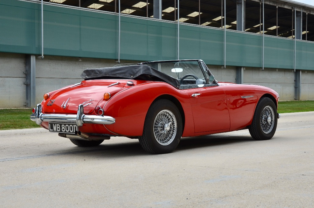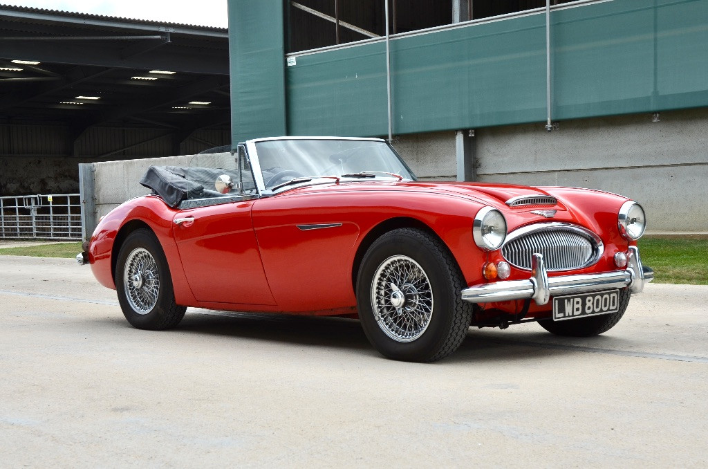 We have been consigned by our client to sell this very nice example of the Austin Healey. Manufactured in Feb 1966 A uk supplied car. Finished in California red with wire wheels and chrome furniture all completed with a black roof .