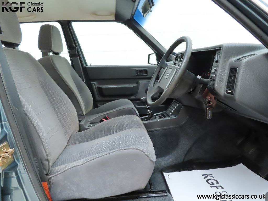 Being the high specification GLE model, metallic paint was standard and this example is specified in classic Ocean Blue Metallic, (Code 219). Exceptionally low mileage and perfect storage conditions sets this example apart and the car presents itself absolutely in line with the mere 5,585 miles from new. Volvo paintwork from this era was famous for its multi-layer treatment and this example is certainly no exception with a spectacular polished mirror finish. A few miniscule markings to the paintwork are utterly insignificant and barely worthy of mention and there is a small mark to the chrome strip on the offside rear bumper corner and rear window. All body panels have uniform shut lines and are pin straight and the underside is remarkable and factory fresh. All glass including the original windscreen is etched with the registration number and the supplying Volvo dealer number plates, rear screen sticker and tax disc holder are still fitted. The 300 Series further cemented Volvo’s reputation for safety and build quality and this example is without question among the best in existence.