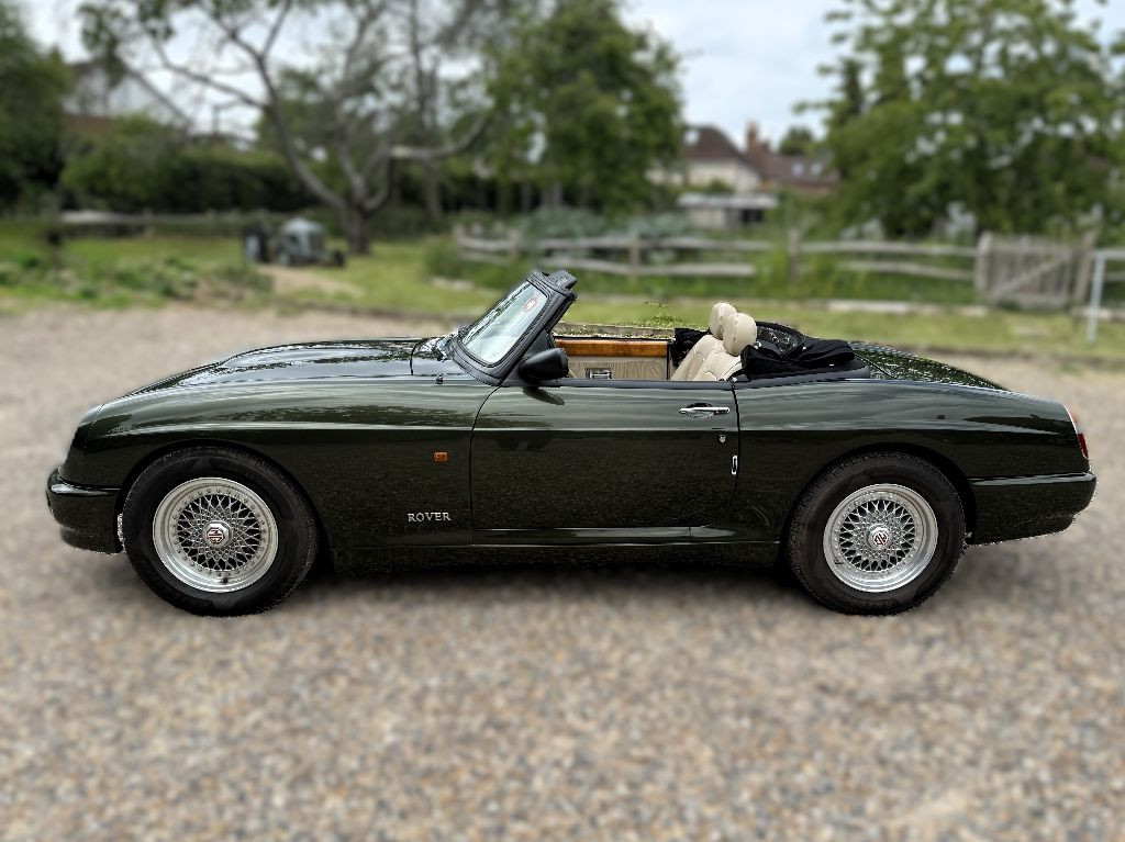 motodrome offer this very late registered, (1996) low mileage MG R V8, finished, as most were, in Woodcote Green metallic with stone beige leather interior and with a black mohair hood.