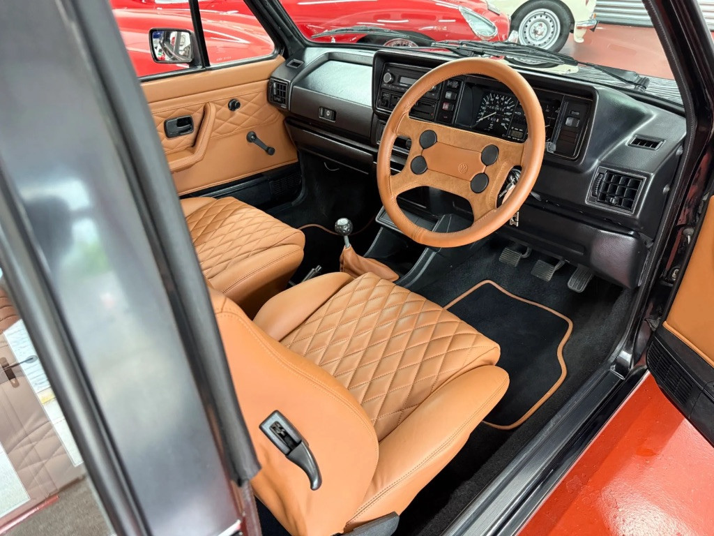 The original sports GTi seats have been reupholstered in fine tan leather with smooth bolsters, single stitch diamond quilted centres and headrests, retrimmed original door cars to match, Alcantara tan headlining and sun visors, original steering wheel retrimmed in smooth cross stitched tan leather and Alcantara, original golf ball gear shift knob with tan leather gaiter... Simply amazing.