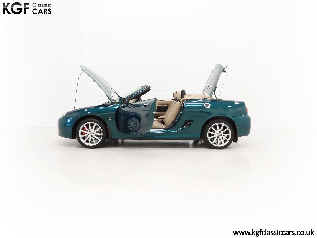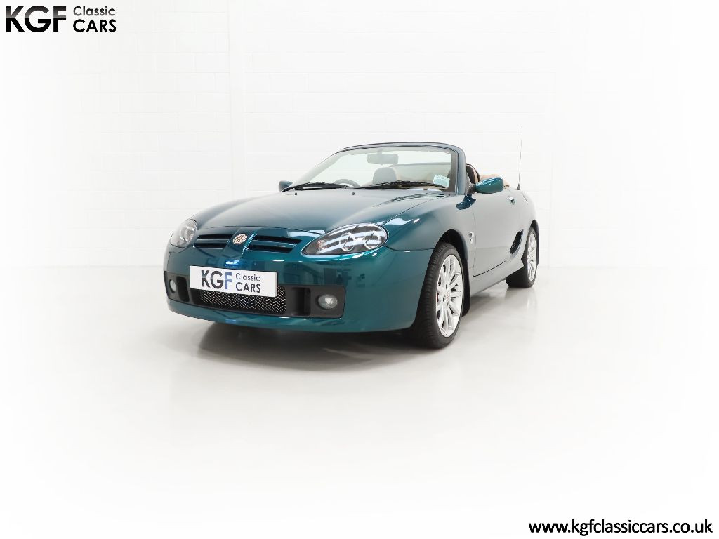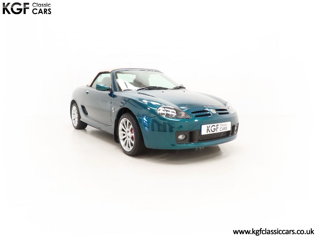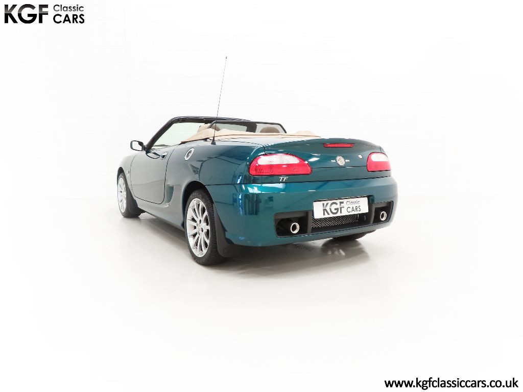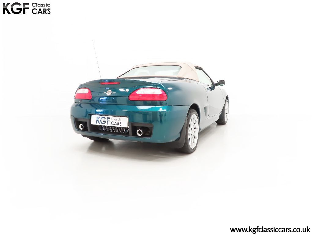 To celebrate 80 years of the MG brand saw a Limited-Edition release of just 1600 MG 80th Anniversary TF cars, available in three special colours and all built to high specification. The UK received just 500 examples and car number 1351 of 1600 boasts outstanding credentials being a one owner car with just 3,375 miles from new. Entirely commensurate with these credentials, the factory original Goodwood Green Pearlescent paintwork, (Code HQM), is pristine throughout and sparkles with no imperfections worthy of noting other than a couple of touched in frontal stone chips. The hood is also perfectly preserved with no fading or deterioration to the plastic rear screen. All trim sections, glass, lights and badges are as new, and the supplying dealer number plates and tax disc holder remain fitted. Garaged from new and used strictly in dry conditions the underside, wheel arch liners and door apertures are spotless. This is a truly exceptional example of one of the rarest and highly collectable in the MGF and TF range with added heritage.