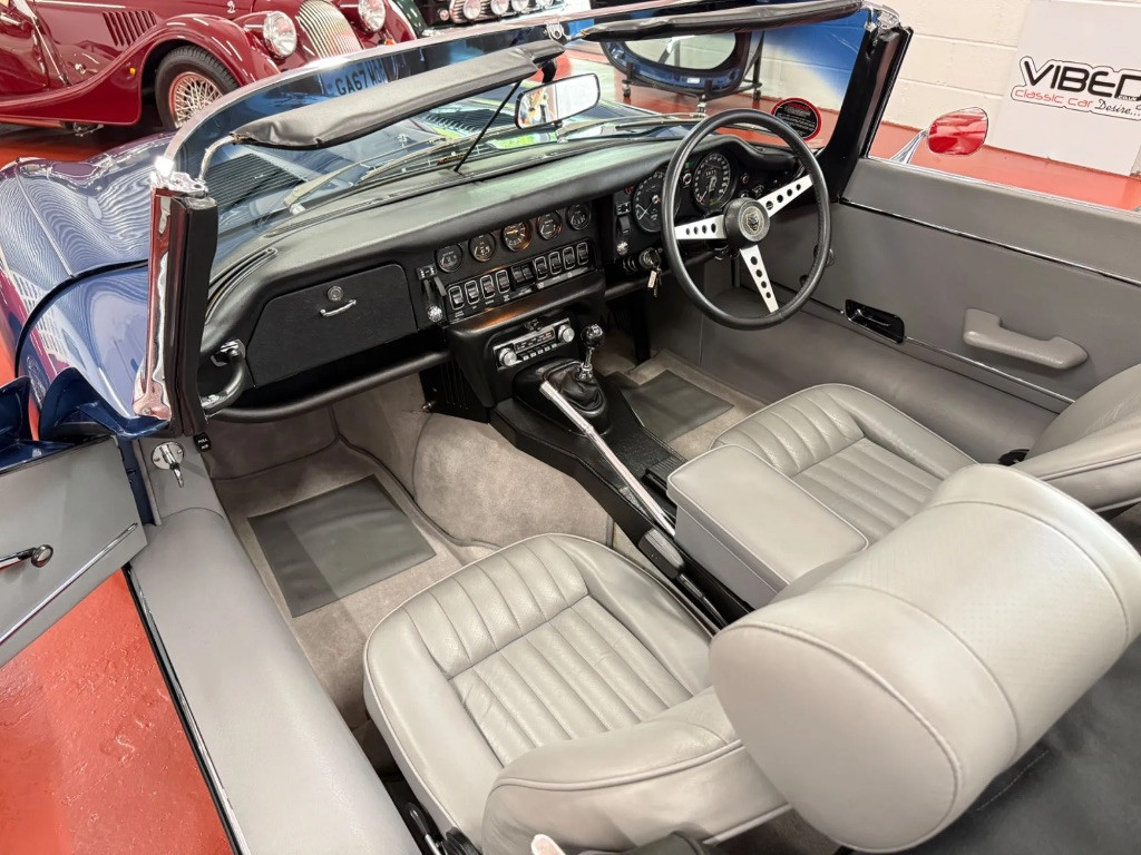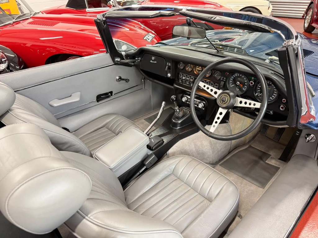 The fully detailed engine and engine bay houses the incredible 5343cc V12 consisting of aluminium 12-valve cylinder heads and an aluminium engine block with a forged steel crankshaft, four Zenith-Stromberg 175 CD2SE carburettors and Opus electronic ignition. Launched in 1971, boasting the world’s only mass-production V-12, producing 266 bhp, 304 lb/ft torque - enough to propel the roadster to 146 mph with a 0–60 mph time of 6.4 seconds.