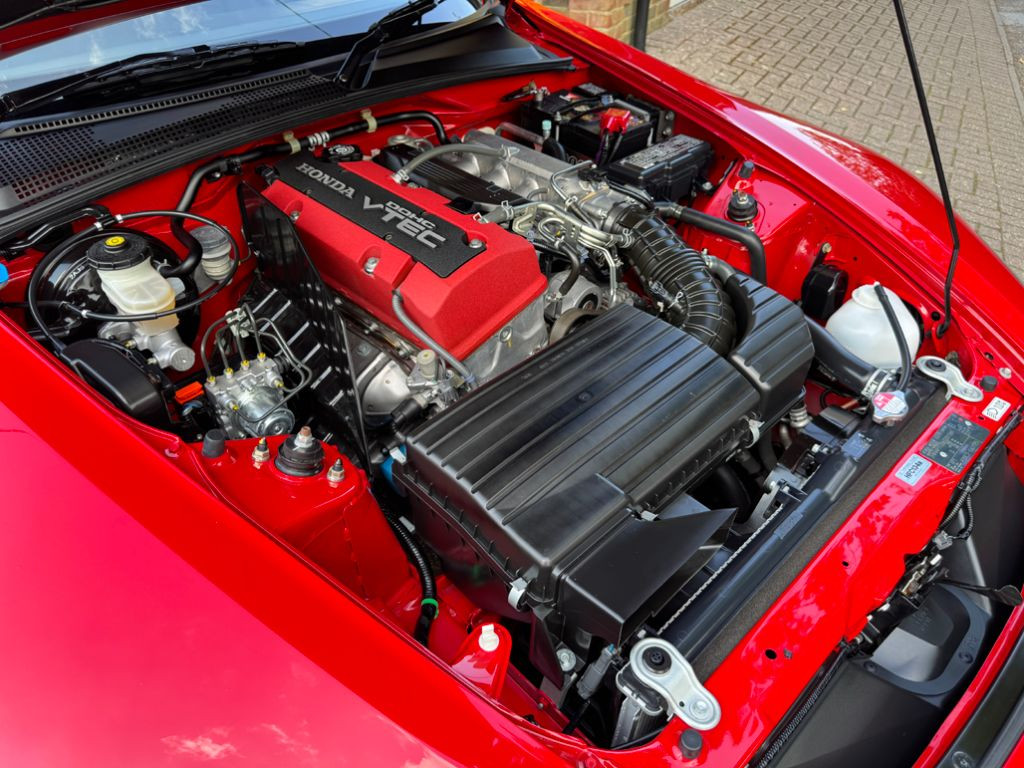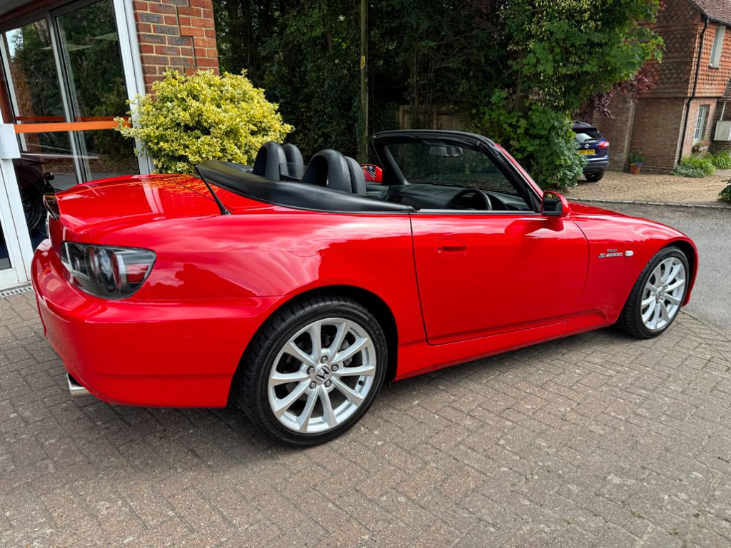 New Formula Red with Black leather, Facelift model, GT model with Softtop and Factory Hardtop,237 bhp 2.0 VTEC engine with 6-speed manual gearbox, Equipped with PAS, ABS, Traction control, E/windows, E/mirrors, Heated mirrors, Air conditioning, Sport seats, Leather Sports steering wheel, Leather/Chrome gear knob, Digital speedometer display, Brushed aluminium trim, Start button, Radio with CD player, 12V power outlet, Power hood, Hood tonneau cover, Factory Hardtop with heated rear screen, Hardtop cover, Remote central locking, Alarm/immobiliser, Xenon headlights with headlight wash, 17” 5-spoke GT alloys, Complete with Hardtop stand and Hardtop bag, Originally supplied by Geo Collins Honda of Hailsham, Complete with Original Honda owners book pack (Service book, Owners Manual, Anti-Theft Radio Identification Card, Honda Key Codecard, Authorised Dealer List) plus Honda Owners Dealer pack, Declaration of Conformity Certificate, Pre-Delivery Inspection List from Collins Honda, Vehicle History Certification & Mileage Certification from Geo Collins Honda, Purchase invoice from Collins Honda, Letters from Honda, Service/parts invoices and Two sets of keys/fobs, Original Dealer registration plates, Unused tools/Jack, Honda Dealer/Specialist service history – Just had major service, Previously supplied by ourselves, An increasingly rare opportunity to acquire a collectors grade S2000 GT which has covered a mere 11,000 miles from new.