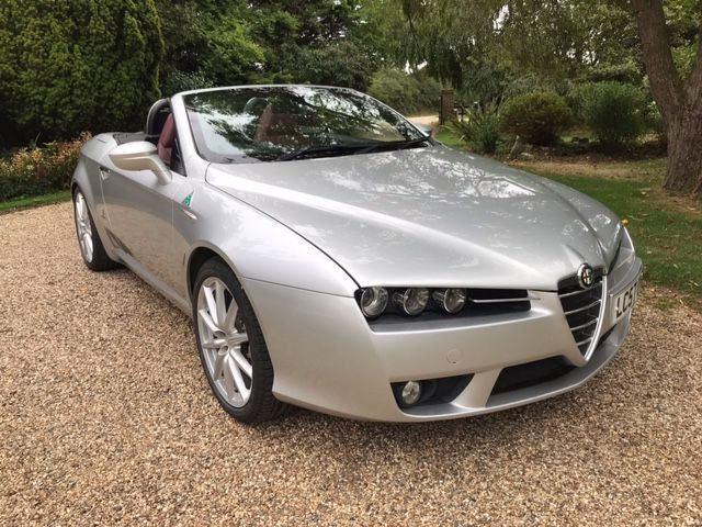 2007(57) Alfa Romeo Spider JTS 2.2i. Metallic Silver with Dark Red ( Maroon ) leather and Black electric soft top. 6-speed manual gearbox, automatic climate control, power steering, ABS braking, cruise control, electric seat back adjustment, electric windows, electric and folding mirrors, heated seats, traction control, 19 inch alloy wheels with virtually new Bridgestone Potenza tyres, upgraded entertainment system with CD, bluetooth phone and navigation system, remote central locking with 2 keys. Only 80,000 miles with FSH. Recent full service. Original Handbook pack including Service book, full MOT history, Hpi clear. ULEZ compliant. A very nice car.