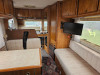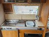 Kitchen: 2 gas hobs, oven, sink (hot water via Fiama boiler), 3-way fridge (gas, 230V, 12V).