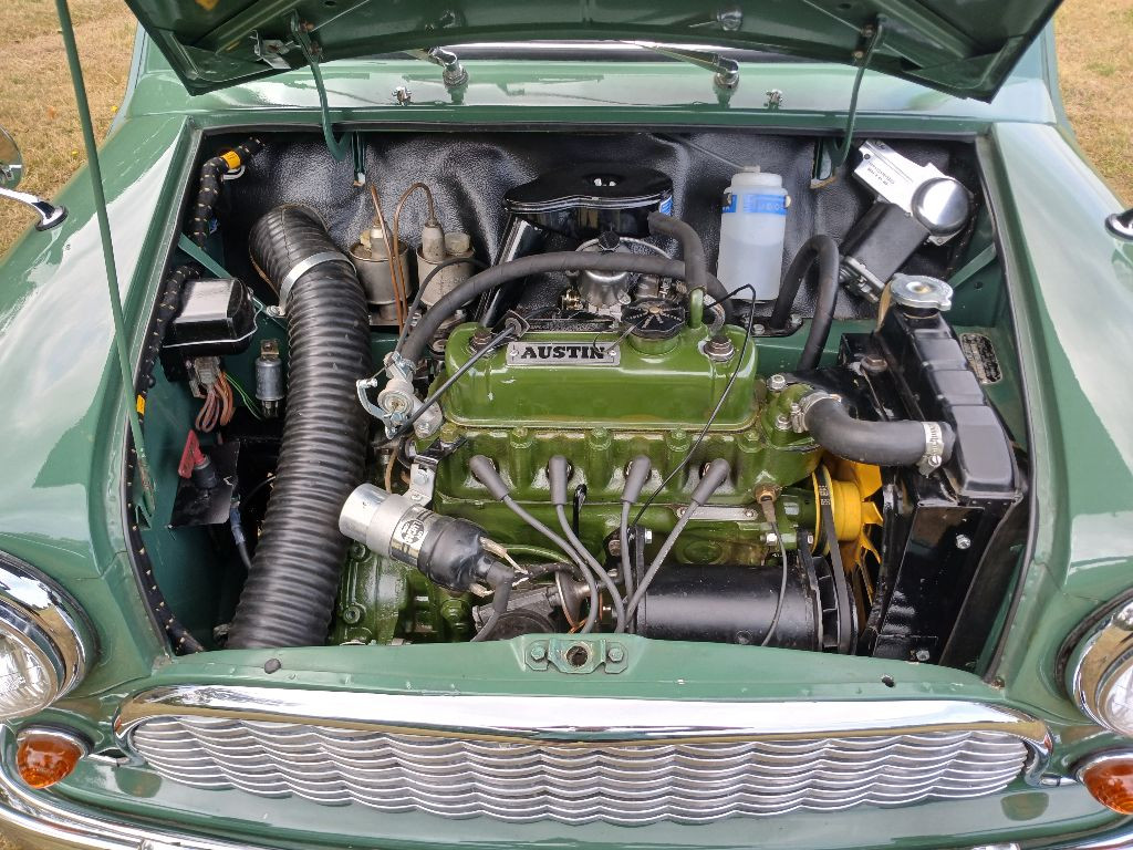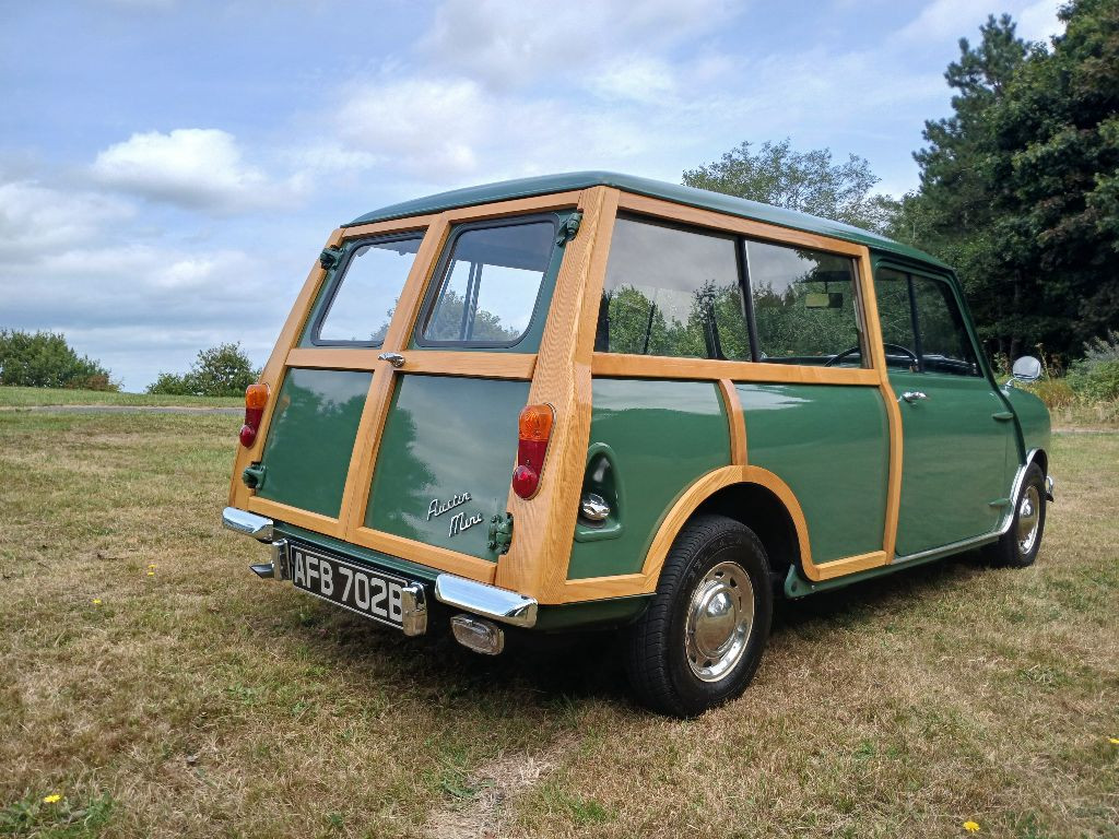 This 1964 Mini Countryman has had an exceedingly high end restoration to an award winning standard. Full body off new parts fitted, full nut and bolt rebuild even down to a reconditioned steering wheel, this is a stunning example. It has photographic evidence of the restoration from start to finish. It has had just 3 former keepers from new. The vehicle comes with the original bill of sale of £564.12.6 dated 20-03-1964, invoice shows delivery charge, number plates, road fund licence, antifreeze, this is indeed a nice touch to have a car with its original bill of sale document. It also comes with its original buff log book, with the 2nd owner who purchased the car on the 2nd of may 1972. Eric and Anna Oakes, who used it as a family car until 1984. The mini is original without any modifications, except for a 12v power outlet which I installed under the dashboard, for mobile phone charging; sat nav etc. The car was put in a shed for 30 years and was taken out for restoration in 2014 and completed in 2016 by Midnight Classic minis in Lincoln. The mini has had a complete body off restoration being put back together using as many original parts as possible. The car body, doors, floor, front subframe and steering etc are all original. Front wings have been replaced the original engine and gearbox have been refurbished. The underside of this Mini countryman is in an as new condition. There is no rust whatsoever. Also underneath, we have a stainless steel exhaust fitted. After 44 years of ownership by the previous owner, this mini countryman is back on the road, and, according to the DVLA only 86 of this model have survived, alas, not in this stunning condition. This 1964 Austin Mini Countryman, is a showcase of timeless style with estate car convenience. Finished in Almond green with flawless timberwork and paintwork, this is a rare opportunity to purchase a countryman of this exceptional quality. So why not make a statement on the road in one of the coolest ways possible. Viewing is highly recommended and welcome. I doubt there is another one like this. I have taken this to a few classic car shows recently, and this was the only one of this model there. This vehicle is in top condition. There is now a new MOT which is valid until 24/08/2026, without any advisories.