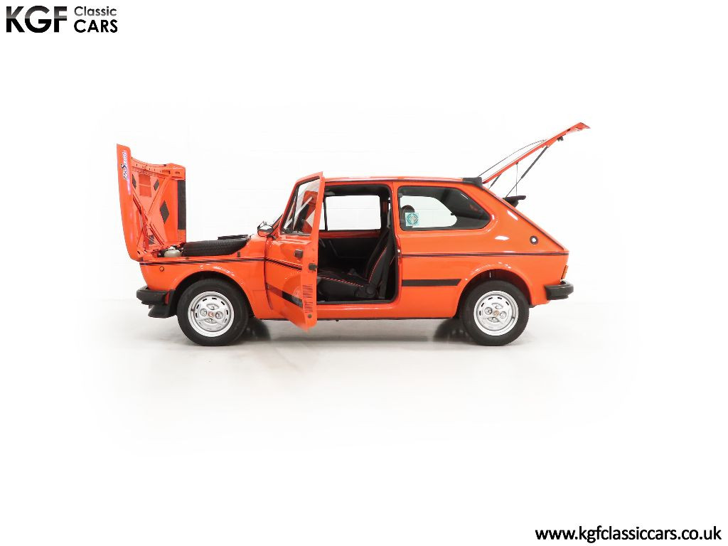 This rare, genuine and UK supplied Fiat 127 Sport is one of a handful of survivors and was registered new on the 20th June 1979. With only five former keepers and well known to the Fiat Motor Club (GB), this example has been enthusiast owned. Cherished by its former keeper, Mr Ford, it has frequented many shows, stared in online videos and graced the front cover of Parliamo, the official magazine of the Fiat Motor Club. A two page feature in Practical Classics magazine traces Mr Fords fascination with this model stirred by memories of his first Fiat 127 Sport when a teenager and his quest to find one decades later. His hard work gained him entry into the Practical Classics Restorer of the Year 2020! Complete with a matching bright orange A4 lever arch file briming with history, all handbooks manuals and brochures are included so that you can witness firsthand the expenditure lavished on this Italian hot hatch. Display plates for shows and a full set of keys with leather Fiat key fob are present. Be prepared for all the attention this ultra-orange car generates that is more exclusive than a Lamborghini Miura!