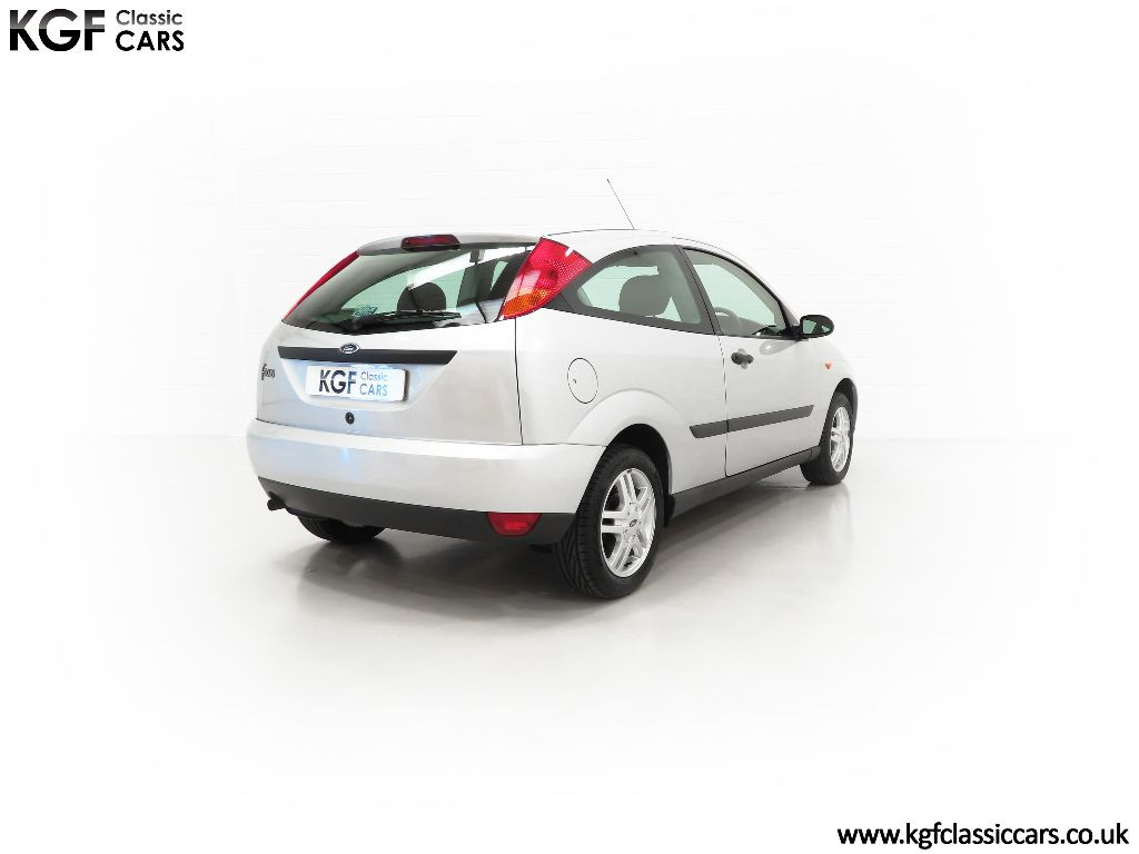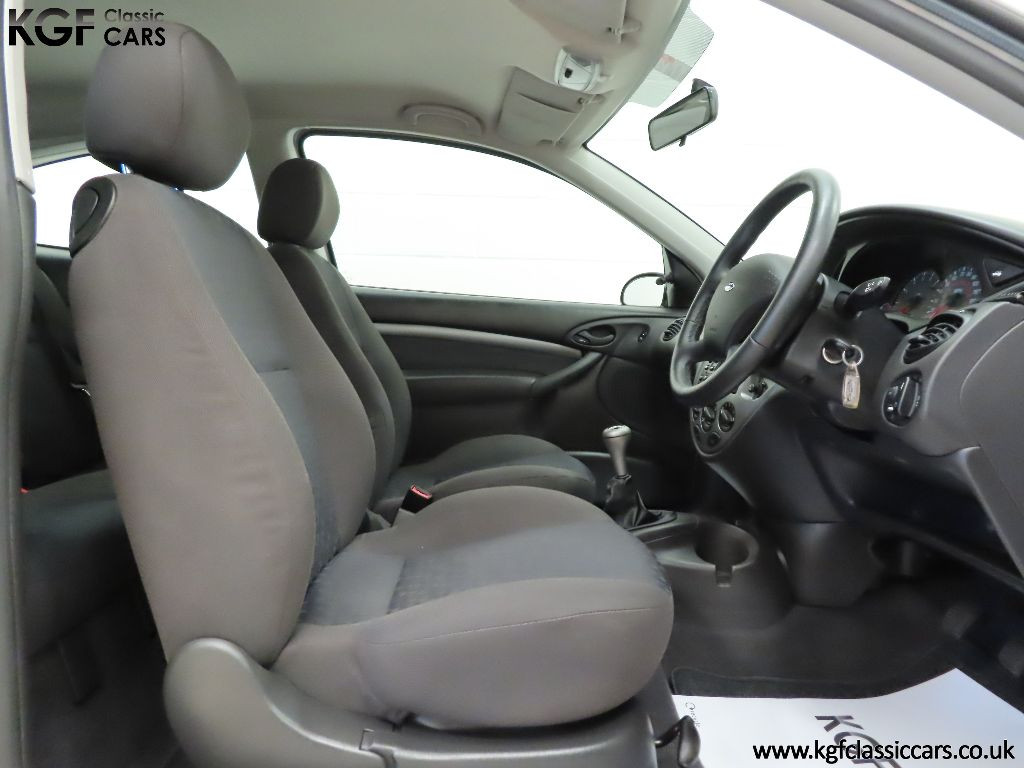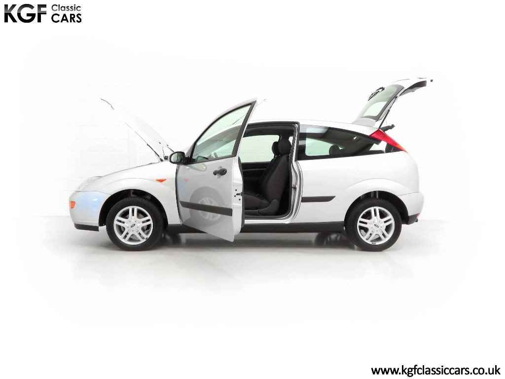 Supplied new on 1st March 2001 by Main Dealer, Allen Ford in Romford, the first and only registered owner is a Mr Young. In stark contrast to most examples that were put into daily use in all weathers, this example was destined for a more cossetted existence. The car has always been garaged, clearly evident in the condition of both the body and astonishing underside, and it is believed that due to the owner’s ill health the car was subject to very minimal use. Early service records as well as online MOT history track the mileage. The original service book has six stamped entries, the first five of which are the supplying dealership, Allen Ford, and cover the period up to 2007 when the car was taken off the road. In August 2025, the car caught the attention of KGF Classic Cars by a feature from a prominent online content creator covering a Mk1 Ford Focus with miniscule mileage and one owner coming up for sale. Intrigue got the better of us and we found ourselves at a classic car auction where we inpected the the car prior to bidding. Being absolutely blown away by the condition and originality, we decided to deviate from our general rule of buying classic cars direct from owner, enthusiasts and collectors and just had to bid. Having won the auction, the car arrived at KGF Classic Cars headquarters where ramp inspection left the team even more speechless at the exceptional preserved condition. Not wanting the car to just be an ornament, a full inspection, brake overhaul, major service and cambelt change has taken place using genuine Ford parts. The original factory fitted Michelin tyres were replaced due cracking with premium Uniroyal tyres. A set of brand-new floor mats ordered directly from Ford are a nice finishing touch replacing the non-original rubber items. The car is now fully roadworthy and ready to showcase what is probably the finest non-RS Mk1 you are ever likely to see. The modern classic car world has long seen the Mk1 Focus RS as highly collectable, and now the car community and indeed many online creators are beginning to revel in the collectability of the everyday variant. Quickly disappearing, the Mk1 Focus has always been an icon and forward-thinking collectors and investors will be making a beeline for this car!