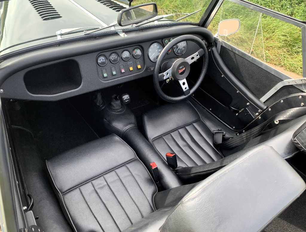 In a striking Connaught Green exterior complemented by Black Ambla Vinyl, a combination that turn heads. At its inception, this vehicle came equipped with a host of notable features, including a scuttle roll bar, a luggage carrier, underseal for added protection, a galvanized chassis to withstand the test of time, and an alloy body and wings.