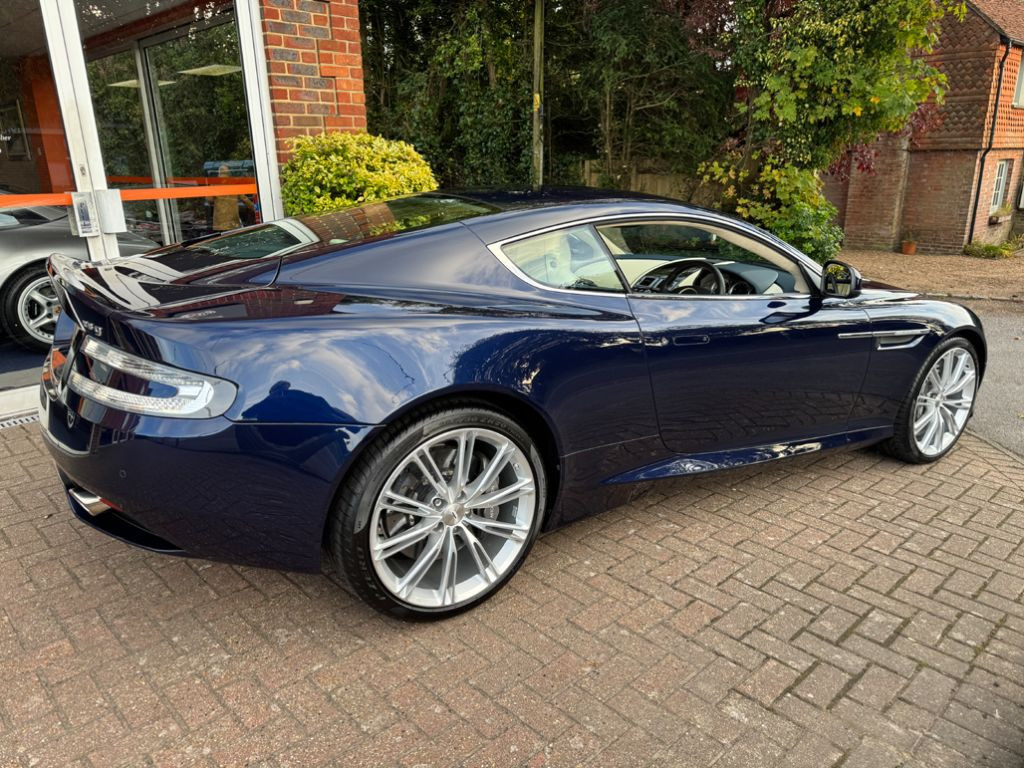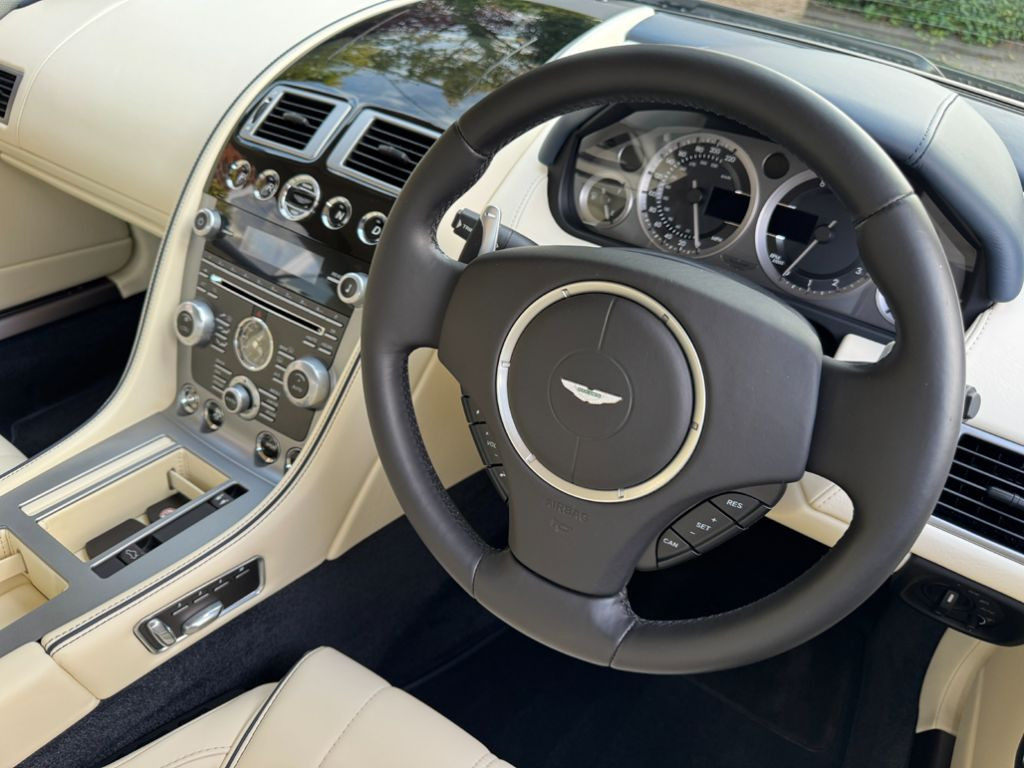 Special order Mariana Blue Pearl with Cream Truffle Caithness leather piped Q Exclusive Baltic Blue with Baltic Blue stitch, 6.0 V12 engine with 6-speed TouchTronic II with Paddle shift, Facelift model (Upgraded V12 increased in power to 517 PS & 620 Nm torque, Switchable driving modes: Normal/Sports/Track, Recessed headlight clusters with Bi-Xenon lights, LED daytime running lights, Design cues from the Virage, New 5-bar front grille, New rear boot spoiler), Equipped with PAS, ABS, ADS Adaptive damping system, DSC Dynamic Stability Control, Traction control, Sport mode, Switchable driver modes, On board computer, Satellite Navigation, Cruise control, E/ windows, E/ mirrors with memory, E/ Power fold mirrors, Auto Air conditioning/Climate control, Outside temp gauge, E/Sport seats, E/lumbar supports, Memory seats, Heated seats, Leather steering wheel, Aston Martin 700W Premium audio system, Radio/ CD player, Bluetooth, Aux input, Leather multi function Sports steering wheel, Optional Glass engine start button, Adjustable steering column, Auto dimming rear view mirror, Cup holders, Obsidian Black Caithness leather steering wheel, Piano Black facia, Q Exclusive Baltic Blue Caithness leather upper instrument panel, Q Exclusive Baltic Blue Caithness leather, 2+ 2 seating arrangement, Q Exclusive Baltic Blue Caithness leather rear seat centre with embroidered AM wings, Contemporary Ivory Alcantara headlining, Caspian Blue contemporary carpets, Multi airbags, Heated rear screen, Remote boot release, Multi airbags, Bright finish grille, Bright finish bonnet surround vents, Stainless steel mesh front grille, Stainless steel side strike grilles, Highline trim, Stainless steel exhaust tailpipe finishers, Remote central locking, Alarm/ Immobiliser, Aston Martin Tracking system, Parking assist with reversing camera, Clear tail lights, Rear LED lights, Xenon headlights, Battery conditioner, Carbon-ceramic brake discs, Grey brake callipers, 20 “Twin 10-spoke liquid silver alloys with diamond-turned finish, Sports exhaust, Originally supplied by Lancaster Aston Martin of Sevenoaks, Complete with original owners book pack/ manuals including 1 glass key complete with original leather box, 1 spare key plus skeleton, Full Aston Martin service history (11 service stamps) - Just had yearly service, A 1 owner DB9 in a stunning colour combination and desirable specification which has covered a mere 12,000 miles from new !