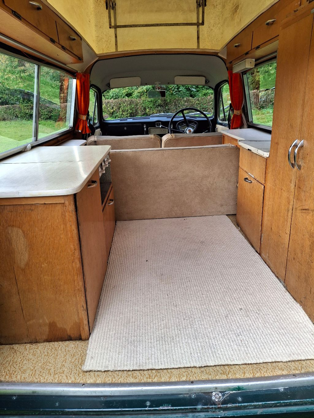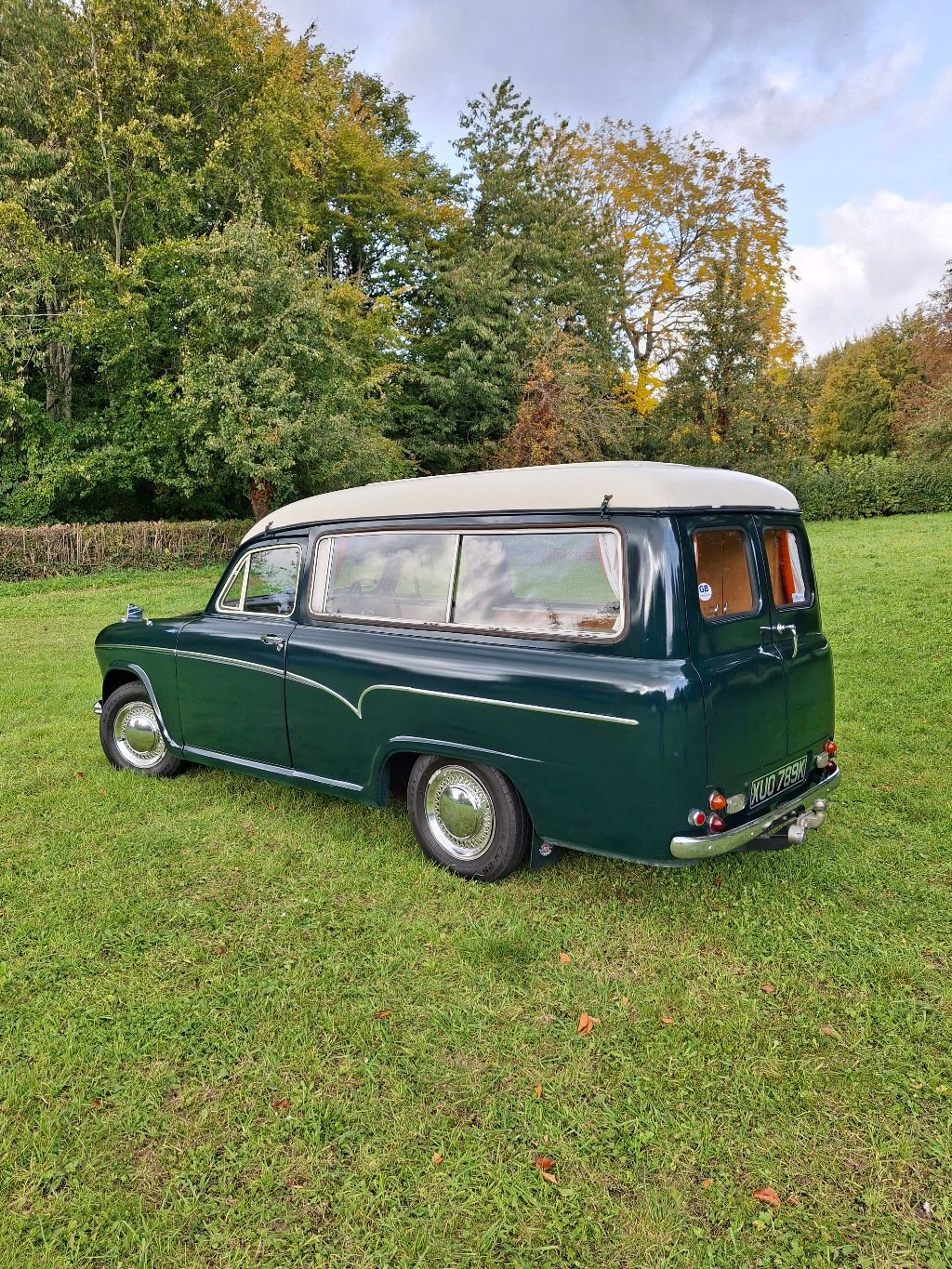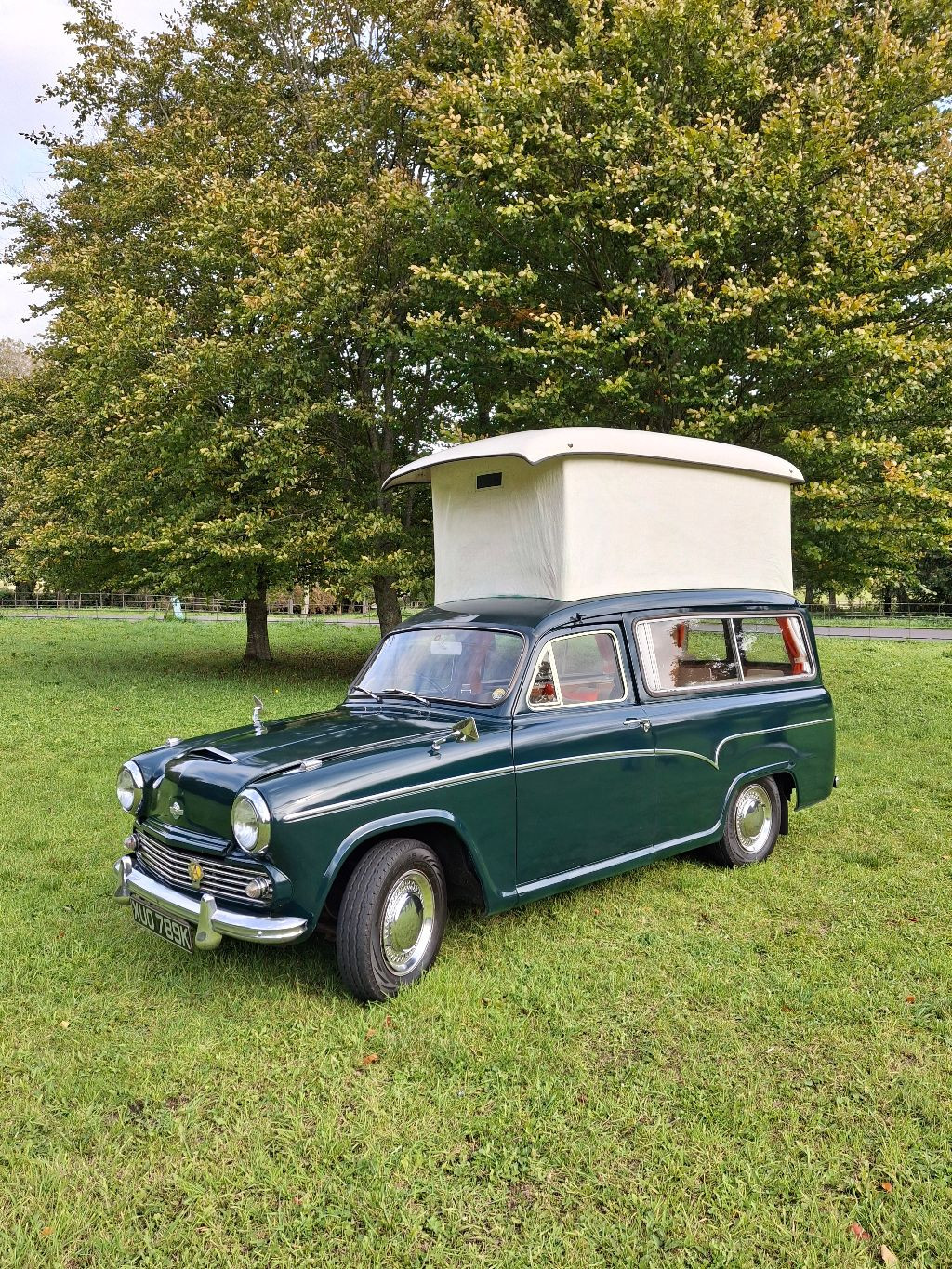 For sale Austin A60 SunTor camper van a rare and original vehicle that retains its original interior with its Dunlopillo fabric seating carpets and door cards. The vehicle was supplied new in June 1972 by Torcars of torrington in Mallard green and white top. It can be used as a camper van, day van, touring holidays and classic car shows. Serviced correctly and regularly, the last one in 2024 using full service schedule. It has its original passport to service and glove box hand books, it also has the half ton van handbook and rare leyland workshop manual. Magazine articles and a list of all owners/ dates from new. A interesting history folder including many MOT certificates and invoices. The actual mileage could be in the region of 60, 000 as the mileometer was repaired in 2022. New tyres in 2023 just over 1000 miles ago. New battery in 2024. electronic ignition fitted. Believe all panels and mechanical components are original. Partial repaint about 10 years ago due to fading but still looking lovely and free from any significant issues with nothing to detract from an overall excellent condition. Under the car is very good with just a little welding in 2008. Lots of storage, gas bottle under wardrobe floor, two burner gas hob, and sink Electric hookup fitted but no lead. A inboard water tank is supplied but not fitted. With the pop top up you have 6ft 3" headroom inside. The SunTor is not concourse but is very original and shines and looks very well with no rust and good chrome. The car drives extremely well with its very smooth engine and gearbox. The vehicle is comfortable and versatile and full of character