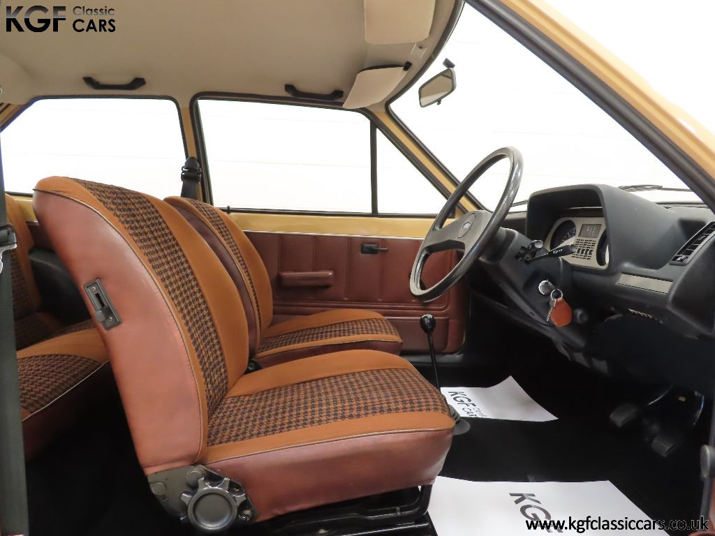 An early Mk1 Fiesta on a S suffix registration, this wonderfully honest example has remained in the same family since new and covered a mere 44,161 miles! Finished in the deliciously period original colour of Nevada Beige, (Code 8), this unrestored example looks amazing with a deep glossy shine to the body panels which, incredibly, are factory fitment. Amazing preservation, thanks in large to dealer applied Endrust treatment from new and cherished family ownership, has seen the bodywork survive in amazing condition with zero evident rust repairs and an underside in perfect structural condition having never been welded, which is almost unheard of! Close scrutiny reveals nothing other than a few light touched in scratches and slight age tarnishing to the badges. Trim sections, lenses and bumpers are in fantastic condition and the original coachline and factory glass throughout remains, as do the supplying dealer steel number plates and rear screen sticker. Lack of rear screen wiper denote an earlier car and this brilliant example is among the best you will ever find.