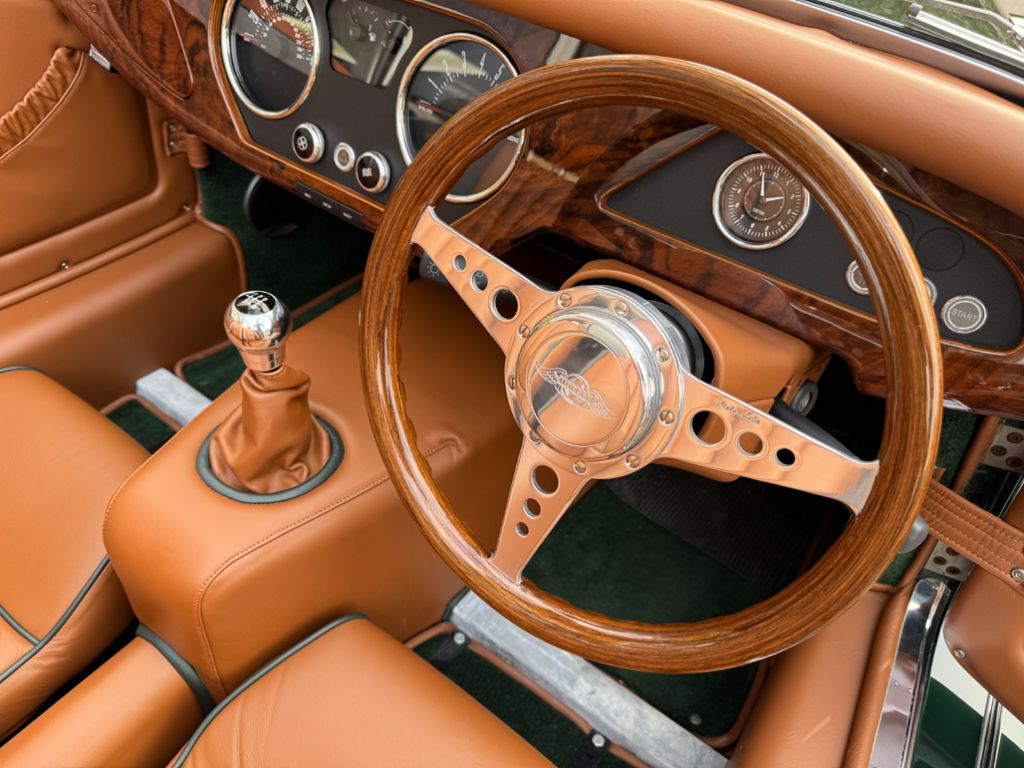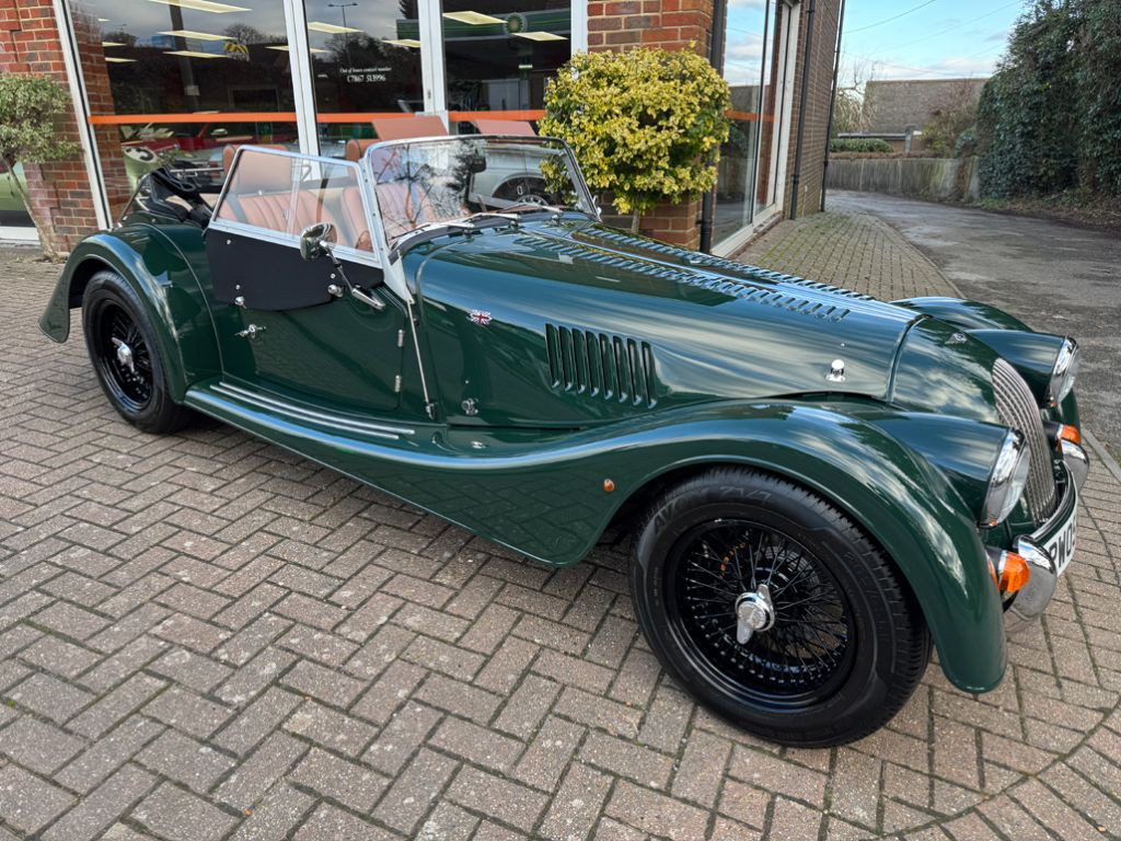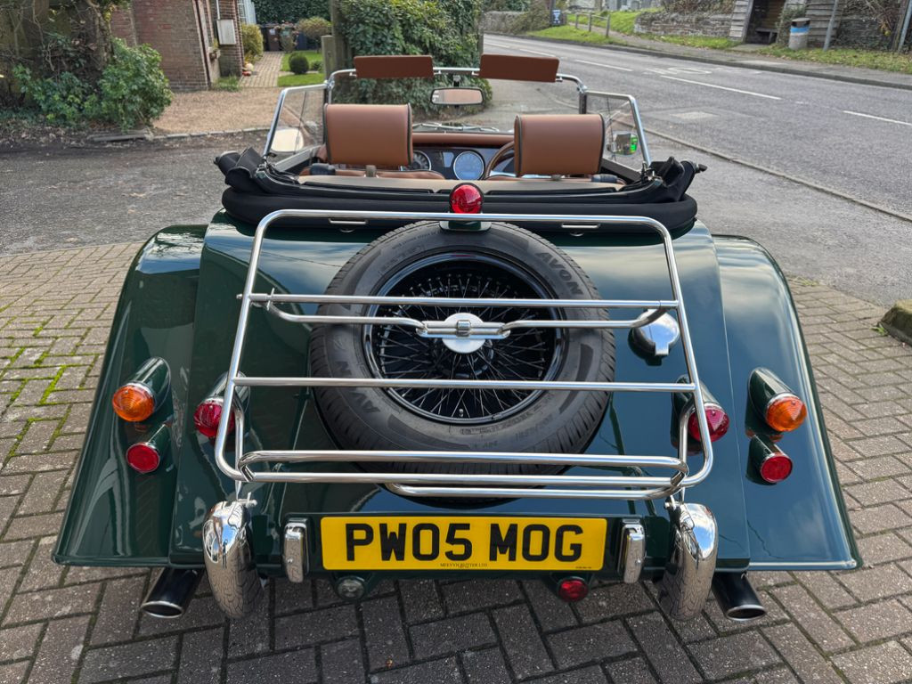 Sports Green with Saddle Brown with Ocean Green Muirhead leather piping, 280 bhp Ford Cyclone 3.7 litre V6 engine with 6-speed manual gearbox, Equipped with Walnut wood dashboard, VDO instruments, Clock, Mota-Lita 3-spoke wood rim steering wheel with polished horn push engraved with Morgan wings, Heated windscreen, Map reading light, Saddle Brown leather steering cowl, Saddle Brown leather interior door handles, Folding & reclining Sports seats, Foot well lighting, saddle Brown leather sun visors, Elasticated door pockets, Alpine Radio/CD player 9Still with factory protective covering !), Dark Green carpets piped saddle Brown leather, Tread rubbers, Deluxe mohair weather equipment (Easy up Mohair hood, Mohair side screens, Mohair side screen bag with Morgan Wings emblem, Mohair tonneau cover), Stainless steel Mesh grille, Green wing beading, Union Jack bonnet badges, Front & rear Over riders, Spare wheel, Stainless steel luggage rack, 6.5 x 15” Sport wire wheels, Complete with unused factory toolkit, Originally supplied by Melvyn Rutter Morgan, Complete with the original New Car Order confirmation and deposit letter from Melvyn Rutter Morgan, Original owners leather bound book pack, Alpine Radio/CD Owner’s manual, Morgan Certificate of Conformity, 2 sets of keys and the optional leather bound factory photographic build album, A 1 owner 3.7 litre Roadster in a desirable colour combination which has covered a mere 1,500 miles from new.