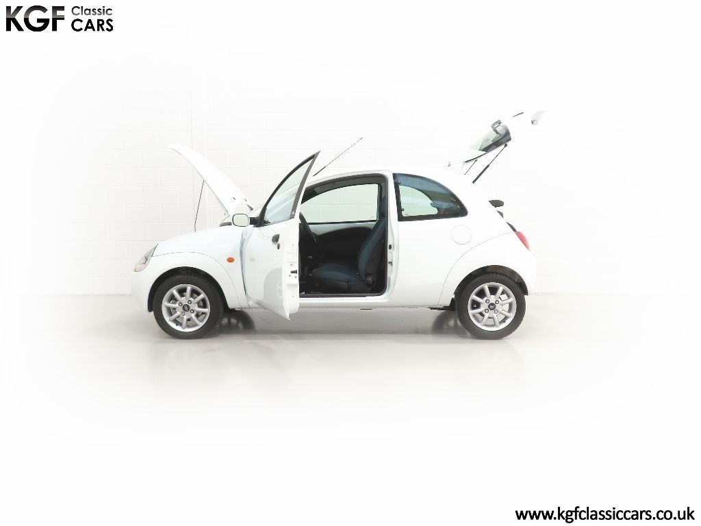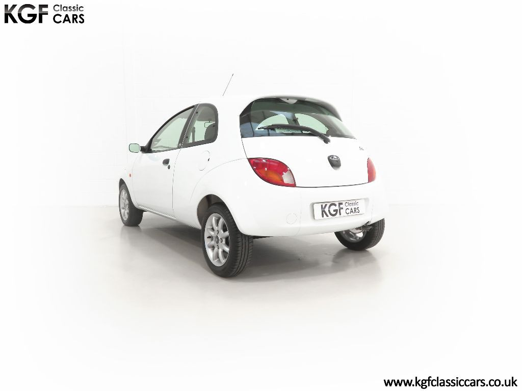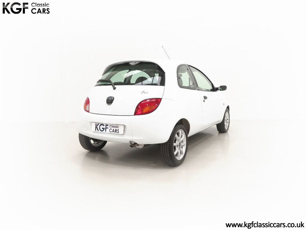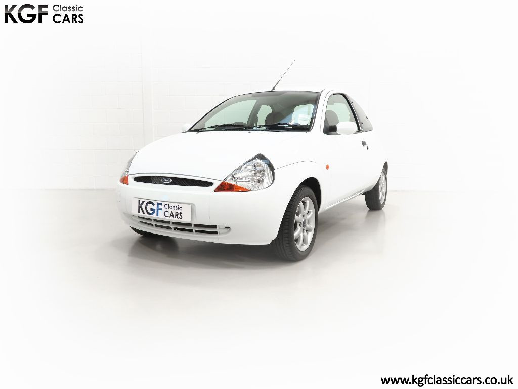 Ford Motor Company’s ‘New Edge’ design language began with the original Ka as the first production Ford to adopt the radical exterior styling mostly recognised with its use of intersecting arcs and crisp lines. This exceptional Ka has covered just 9,854 miles from new with only one owner. Finished in factory original Frozen White, (Code F7), the bodywork and paint finish are simply outstanding with a bright pure shine to the pin-straight panels. A small touched in scuff to the nearside door mirror is the only imperfection worthy of mention. This garaged Ka has none of the common bodywork issues often found and the amazing underside still displays factory labels, long lost on most examples. Ford Supplying dealer number plates, rear screen sticker and tax disc holder remain fitted. Hugely superior to the usual offerings and without question, one of the finest low mileage cars in existence.