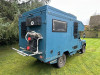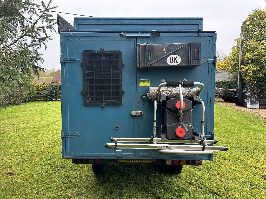 Whilst there are internal cooking facilities, on opening the rear doors, the original stretcher lifters have been converted into foldable worksurfaces, and there are gas and water points, meaning cooking and eating can also be done in the open air or under the awning, weather permitting.