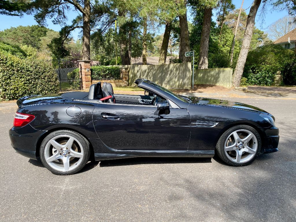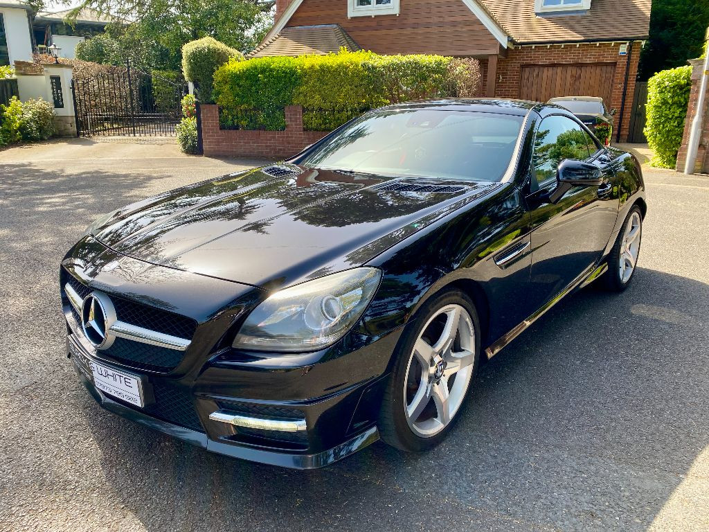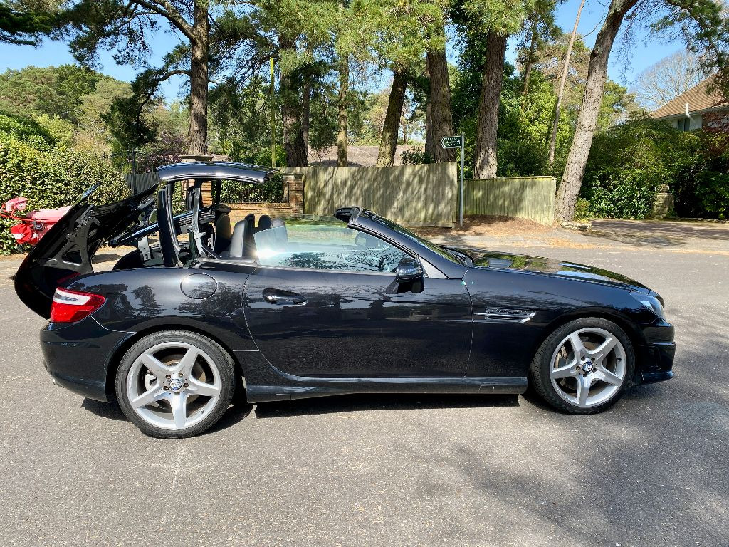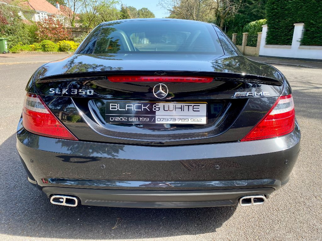 Mercedes Benz SLK 350 V6 Blue efficiency AMG Sport Edition 125 Tip/Auto. Finished in Obsidian Black (201A) with Black/Anthracite Int (197U). A 7-speed automatic (7G-Tronic) with paddle shift with a superb spec that includes but is not limited to: DRL's, PDC, SRS, ABS, PAS, cruise control,Electric heated memory seats with air scarf, multi function steering wheel, Staggered 18" Diamond cut AMG alloys with Premium Continental Sport Contact 5/6s 245x35x18 rear and 225x40x18 front, AMG suspension/front spoiler/side skirts and over mats, Aluminium facet dash and trim, Comand APS with DAB/CD/DVD changer and Nav, phone connect, linguatronic, Air con/climate control, electric windows/mirrors, power roof, Presented superbly with services having been undertaken @ 14,885 - 34,878 - 40,312 - 43,178 - 47,272 - 49,062 - 49,777 - 50,527 - 54,539 - 57,956 - 60,065 - 61,150 and 65,065 respectively.