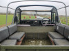 Comes with bench style side mounted seating in the rear and a full canvas style roof and rear cover. A rear "NATO" style tow hitch is also installed.