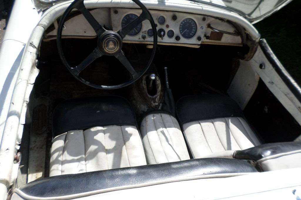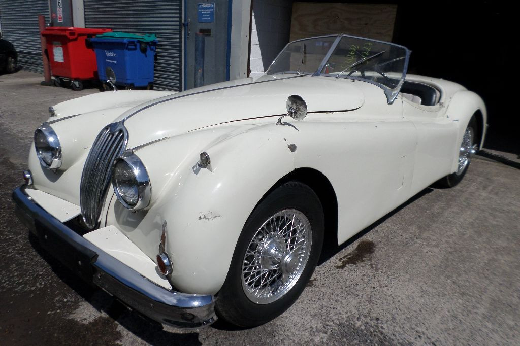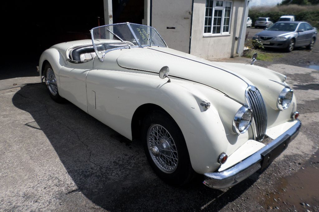 Jaguar XK140 OTS 9S, 1956, heritage certificate showing matching numbers with close ratio gearbox, full 9:1 C Type engine and 2” sand-cast carbs, one of 38 built by Jaguar to this spec, cream body colour with special order white interior, rare car indeed. The car has been started and driven on our premises proving there is no major mechanical faults. We would like to restore this car for a new owner or can be sold as is, alternatively we can assist with parts of the restoration that a diy home restorer is not confident to tackle.