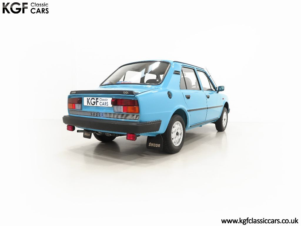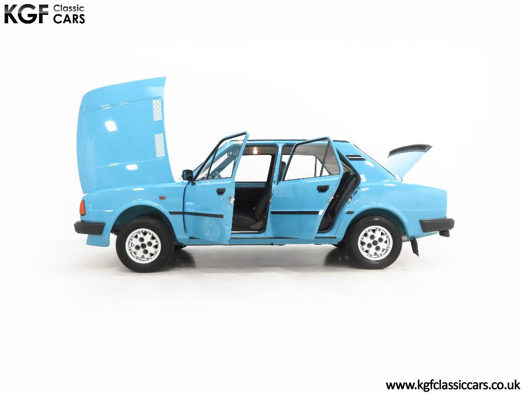 An astonishing example in factory original condition, this Skoda Estelle Two 130L has remained in the same family since new and covered a genuine, verified 3,825 miles. Finished in the factory coating of Sky Blue, (Code 4185), the paintwork is outstanding throughout and fully commensurate with the uber-low mileage. All original body panels are pin straight with no damage or repairs undertaken, and the underside is structurally perfect. Nothing other than tiny touched in scratches are worthy of mention. The two-piece bumpers, Thorax DOT etched glass, lights, badges and trim sections are all perfectly preserved. The supplying dealer number plates, rear screen sticker, Lombard RAC Rally sticker and Lacro Diamond Brite label remain fitted. One of Britain’s best value for money cars and cossetted from new in the hands of a fanatical Skoda enthusiast family, this example certainly is amongst the best survivors.