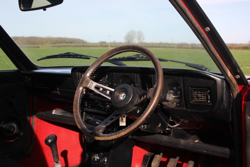Cosmetically the Alfa presents quite nicely. The previous keeper informs us that they have extensively recommissioned the car including a respray in this vibrant red hue. Its certainly a striking car and one that simply highlights lighter signs of blemishing or marking. Inside is much the same story, remaining a nice places to be with the expected wear and tear commensurate with age.