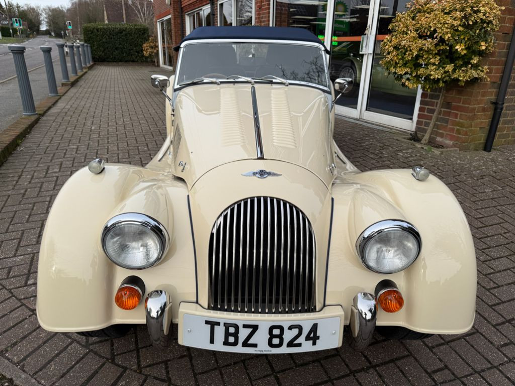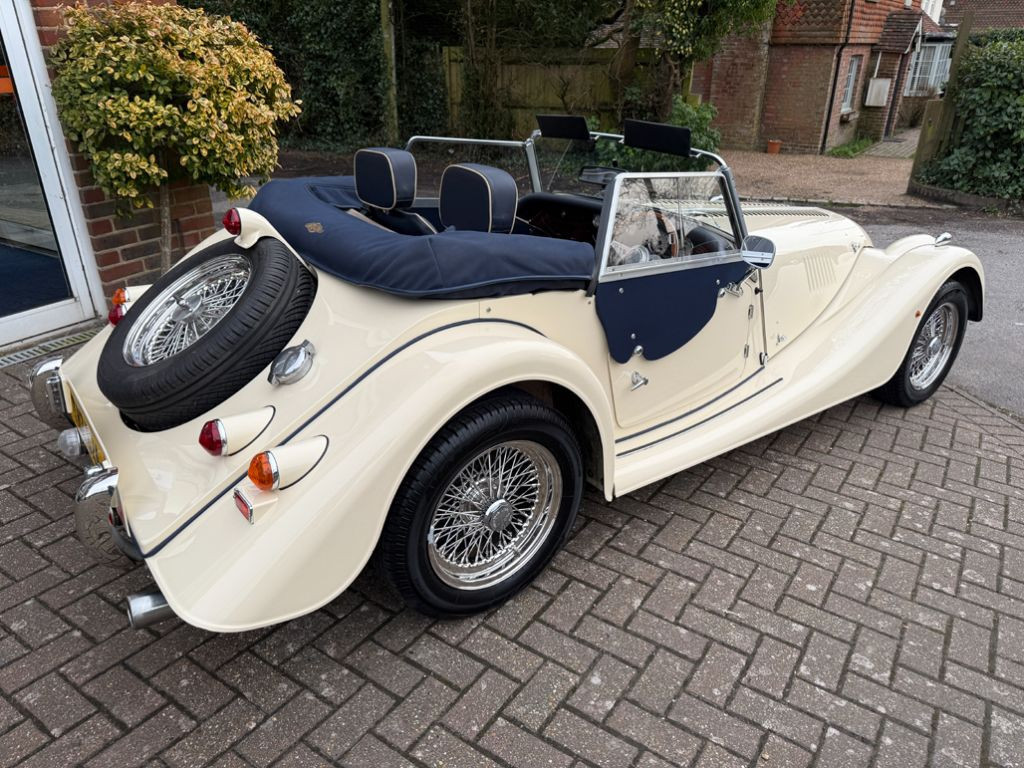Royal Ivory with Russian Blue Muirhead leather piped Ivory, 2.0 litre Ford Duratec engine with 5-speed manual gearbox, Wide body model, Equipped with Walnut dashboard, Mota-Lita wood rim steering wheel with Morgan engraved horn push, Le Mans gear knob, Folding & reclining Sports seats, Heated windscreen, Radio/CD player, Russian Blue sun visors, Elasticated door pockets, Navy Blue carpets piped Blue, Deluxe Navy Blue Mohair weather equipment (Easy Up hood/Side screens with side screen bag), Navy Blue mohair hood tonneau cover with Morgan ‘Wings’ emblem, Navy Blue mohair side screen bag with Morgan ‘Wings’ emblem Stainless steel grille, External door handles, Tread rubbers, Navy Blue wing beading, Stainless steel overiders, 3rd brake light, Spare wheel, 15” Stainless steel wire wheels, Originally supplied by Richard Thorne Morgan of Reading, Complete with Original leather bound owners book pack including Owners Handbook, Fuse Guide, Morgan Rescue booklet, Original Richard Thorne Morgan Owners folder including original Pricelist, Dealer list, Proforma invoice, Bill of sale, Letters from Richard Thorne Morgan reference new order, New Morgan checklist, Morgan Certificate of Newness, Morgan Certificate of Conformity, Photo of 1st owner collecting the Morgan from the Factory, Leather bound Morgan Factory photographic build album still in box, Various service/parts invoices, Old MOT’s and 3 sets of keys with Morgan fobs, Full Morgan service history (16 services), Complete with cherished registration number, A cherished 1 owner example which has covered a mere 6,500 miles from new..