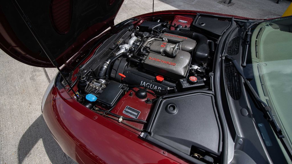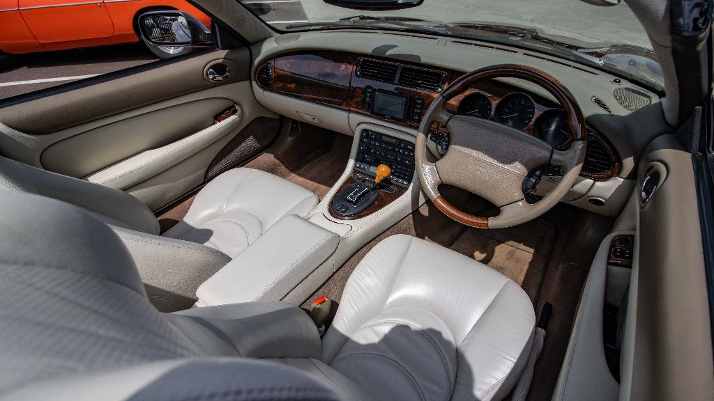 This particular car in its fantastic and rare colour combination has led a very cossetted life. We have worked on quite a few X100 cars here at Jagtechnic and HPC and I have personally owned a 4.2 XKR and can honestly say that this car has by far the healthiest engine and gearbox of any that I’ve had the pleasure of driving. Gently burbling away with its factory standard exhaust at idle, when the windows are closed, you’d barely know it was running. Sport mode on the gearbox works exactly as intended too, which is another rare find.